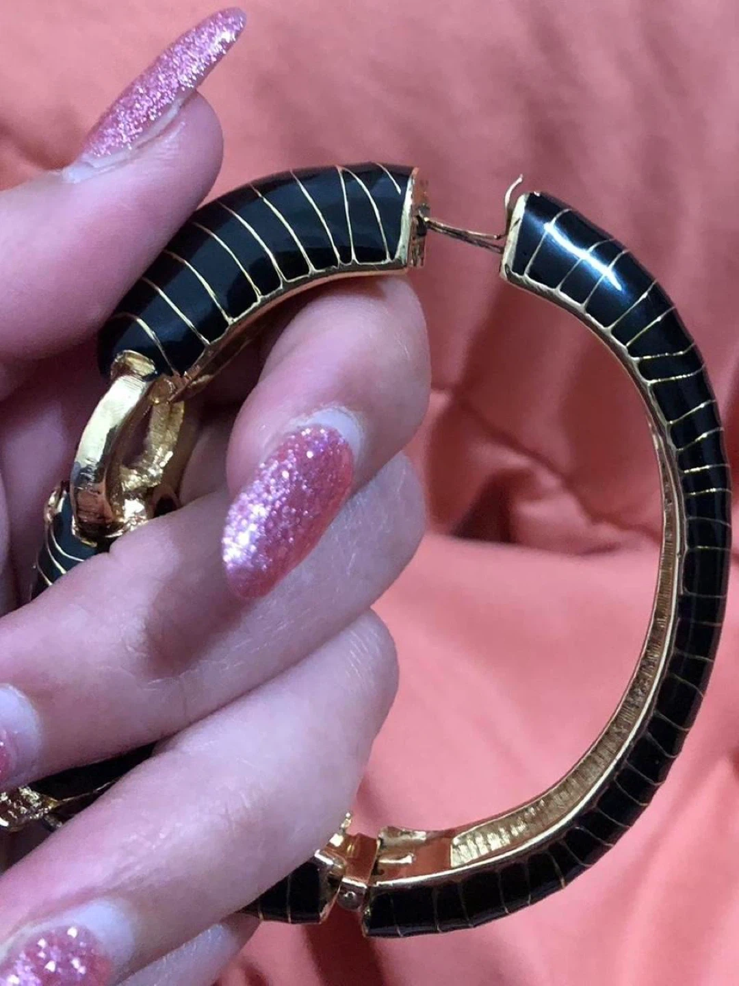 Black Panther Enamel Hinged Bangle Bracelet with Rhinestones
