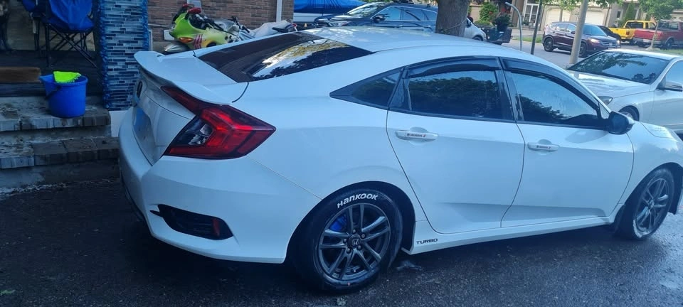 2017 Honda Civic LX model with a 5-speed manual transmission. Asking $7950 plus HST. Located in Markham. This is a white, sport-look car that is clean inside and out, with no dents, rust, or issues. It runs and drives perfectly. Features include power locks, power windows, power mirrors, heated seats on both sides, tinted windows, a new battery, sport aluminum rims with 4 all-season tires, AC, CD player, digital touch screen with AUX and USB, and Bluetooth. It's very economical on gas and cheap to insure. Recent work includes new rotors and brakes, a new battery, and a fresh oil change. It also has bright white LED headlights and a rear camera. The engine is a 1.8L. Safety is included in the price. Carfax is available for serious buyers who come to see the car. The price is firm as it's already the lowest on the market.
