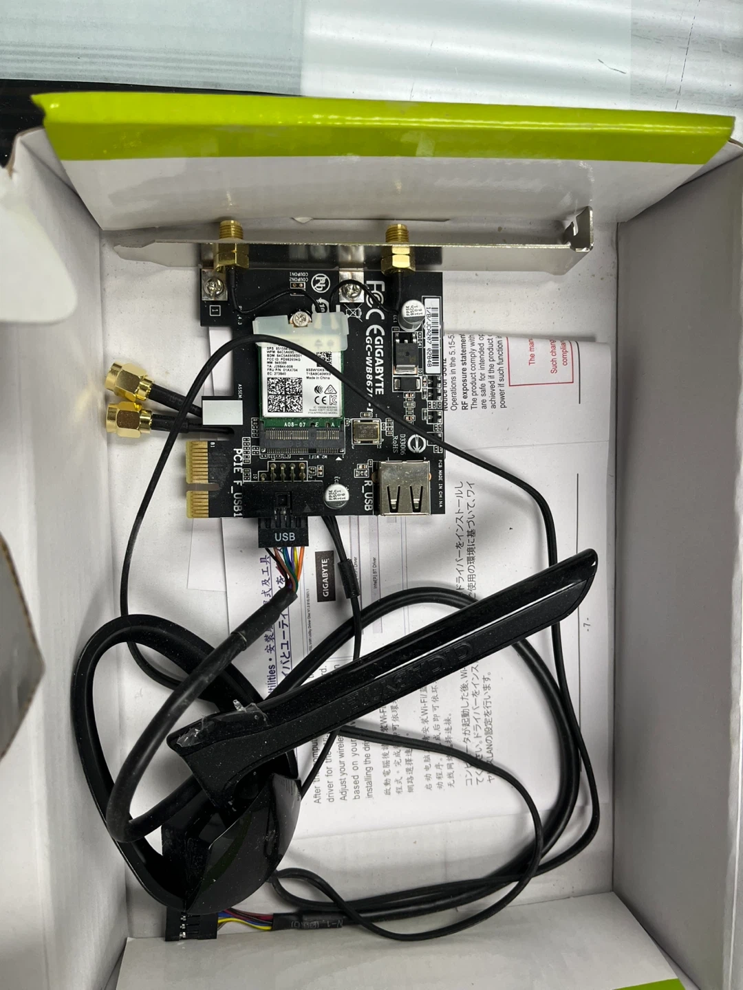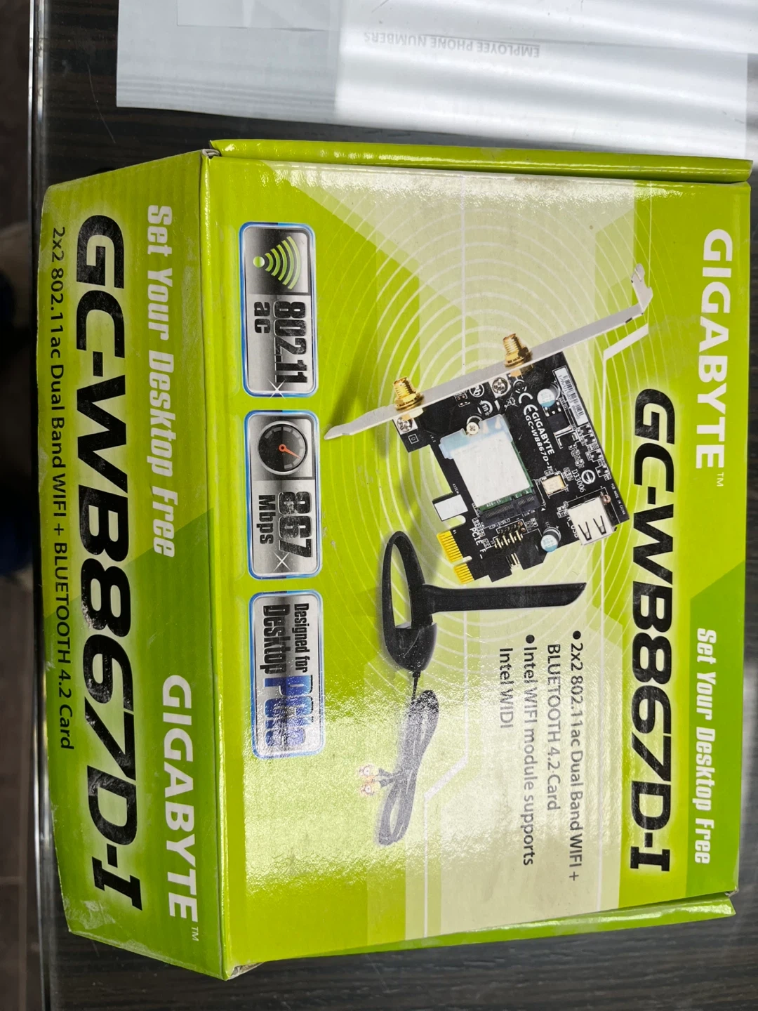 GIGABYTE GC-WB867D-I 2x2 802.11ac Dual Band WiFi and Bluetooth 4.2 PCIe Expansion Card. Includes WiFi antenna and Bluetooth connector. Intel WiFi module supports Intel WiDi.