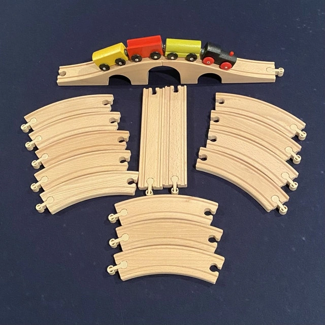 Wooden train set for toddlers. Retails for $20 at IKEA. In excellent like new condition. 16 wooden pieces and 4 wooden cars that join together magnetically. Available for pickup in Pickering near Finch and Whites. $10. Cash accepted.