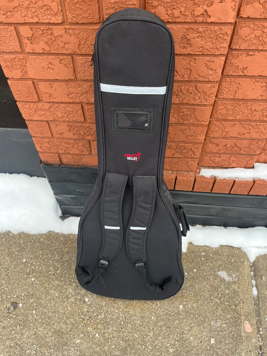 This is an Epiphone DR 100 acoustic guitar. It comes with a black gig bag for transport and protection. This instrument is great for learning or casual playing. $100 obo