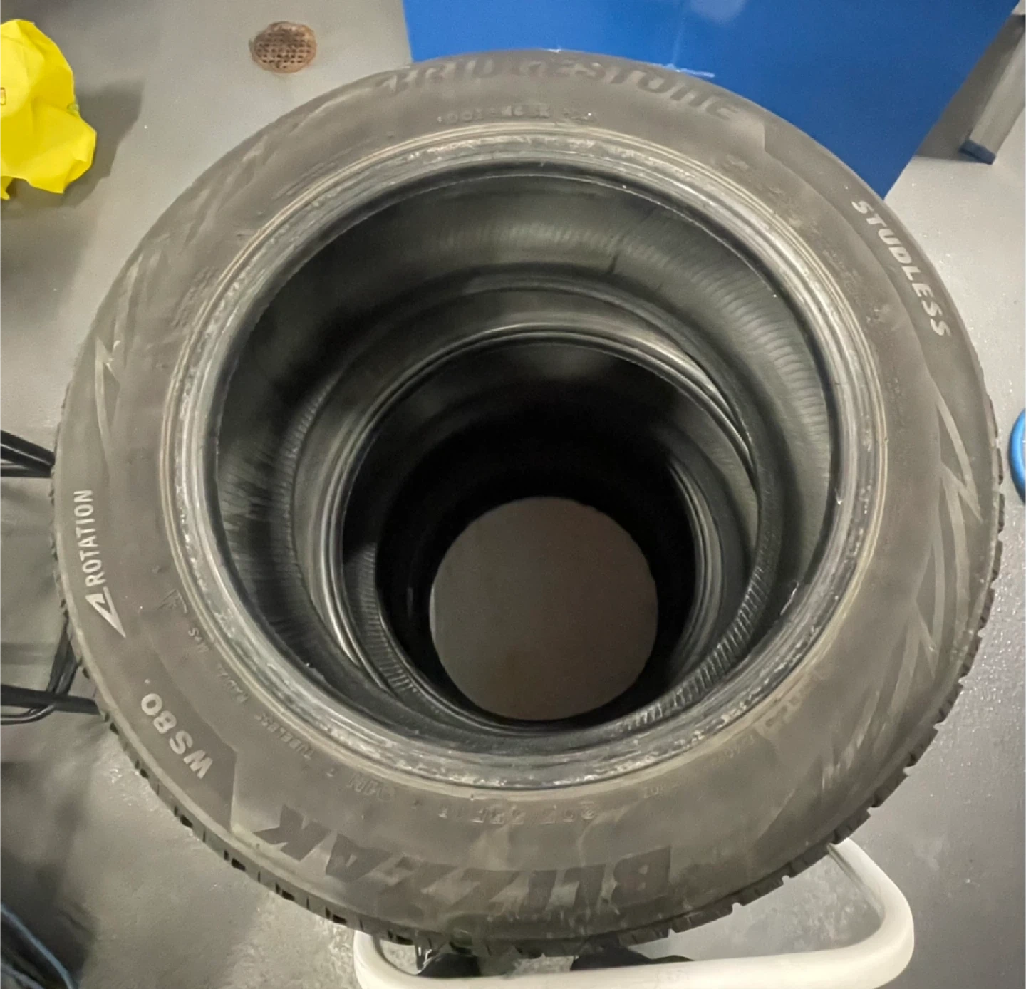 Set of four Bridgestone Blizzak WS80 studless winter tires. They offer excellent traction for snow and ice conditions. Tire size is 225/60R17.