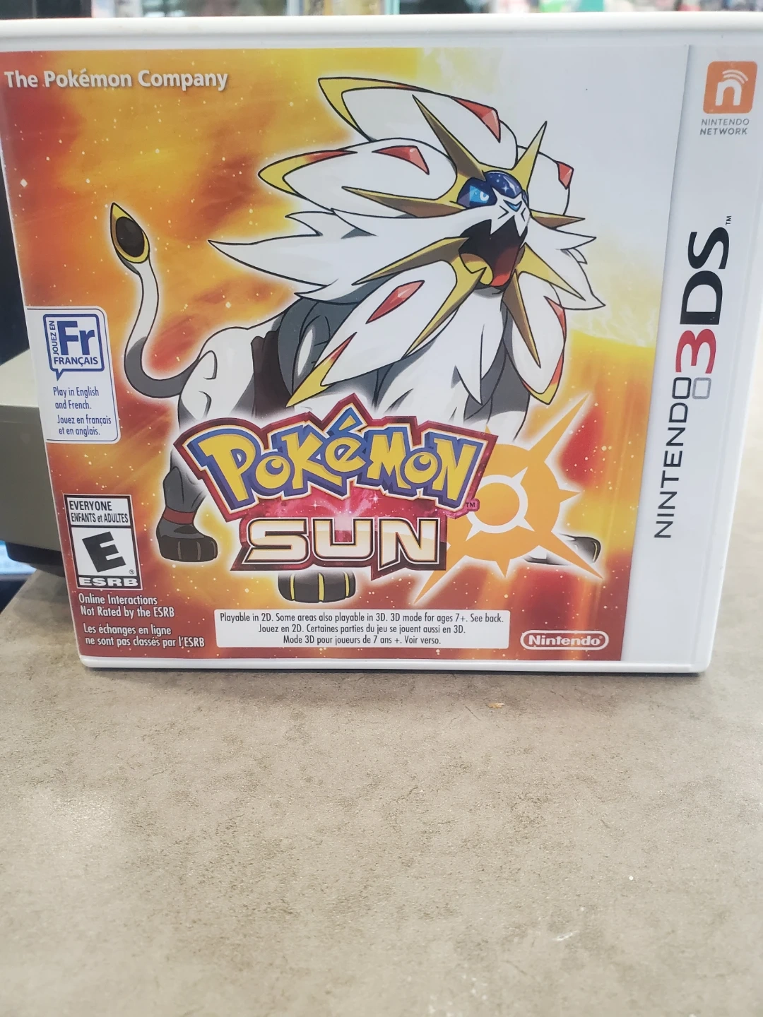 This is the Pokemon Sun game for the Nintendo 3DS. It allows for 2D and 3D play. Wireless internet access is required for online play. Playable in multiplayer mode.