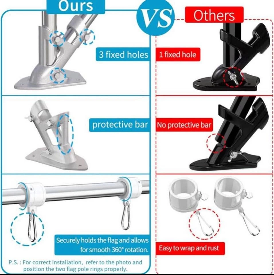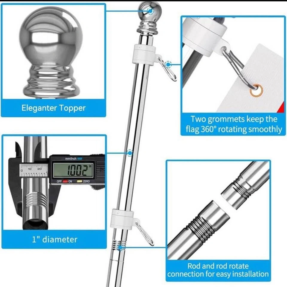 2 Pack Silver Stainless Steel 6ft Flag Poles with Bracket