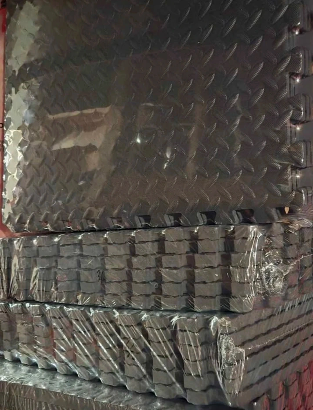 Create a safe and cushioned surface for workouts, equipment, or playtime with this set of 6 black diamond-pattern EVA foam tiles. Each tile measures 24" x 24" x 1", covering a total of approximately 24 square feet. Ideal for home gyms, kids’ play areas, or any space needing extra protection.