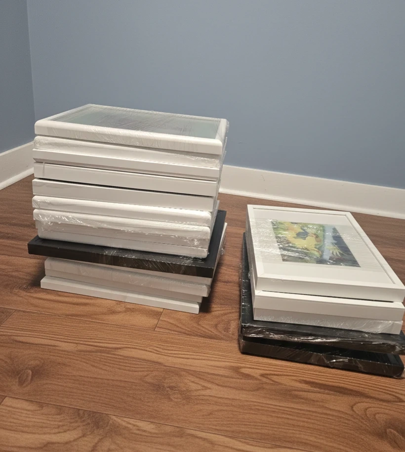 Selling a variety of picture frames in white and black. 16 frames. Sizes and styles vary. Some frames are already matted. Great for displaying art or photos! 5 each or all for 50