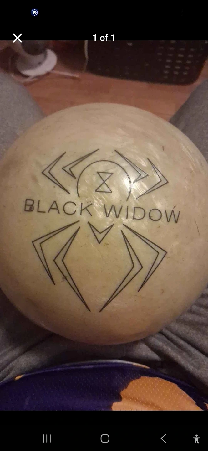 This is a Brunswick Black Widow bowling ball. It has a distinctive spider web design. It's a classic choice for bowlers seeking performance.