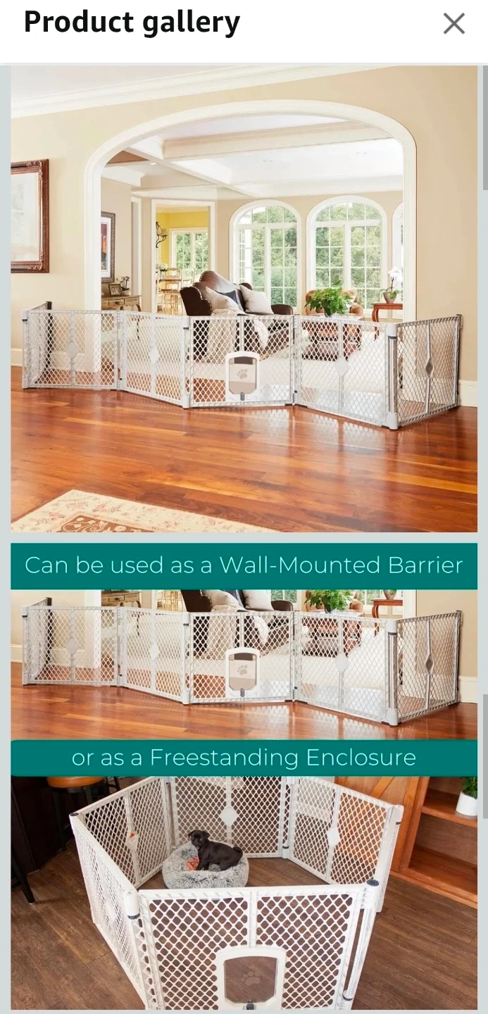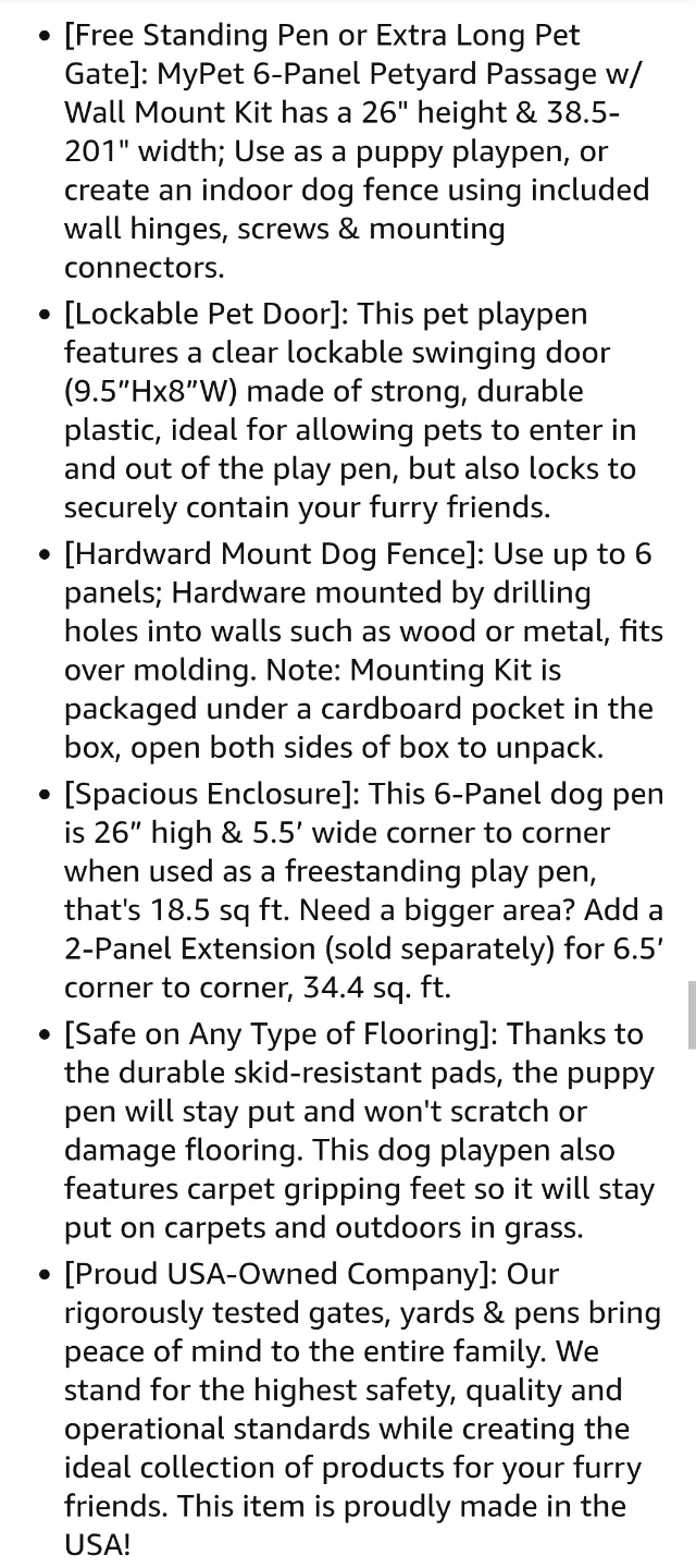 Keep your furry friends safe and secure with this North States MyPet 6-Panel Petyard Passage. This versatile pet yard can be used as a freestanding playpen or as a wall-mounted barrier with the included hardware.