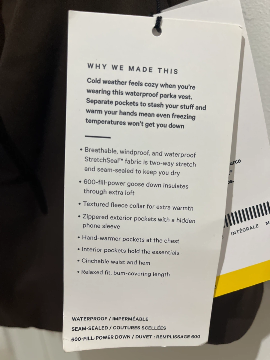 Lululemon Waterproof Down Oversized Vest - Size 2 - Espresso