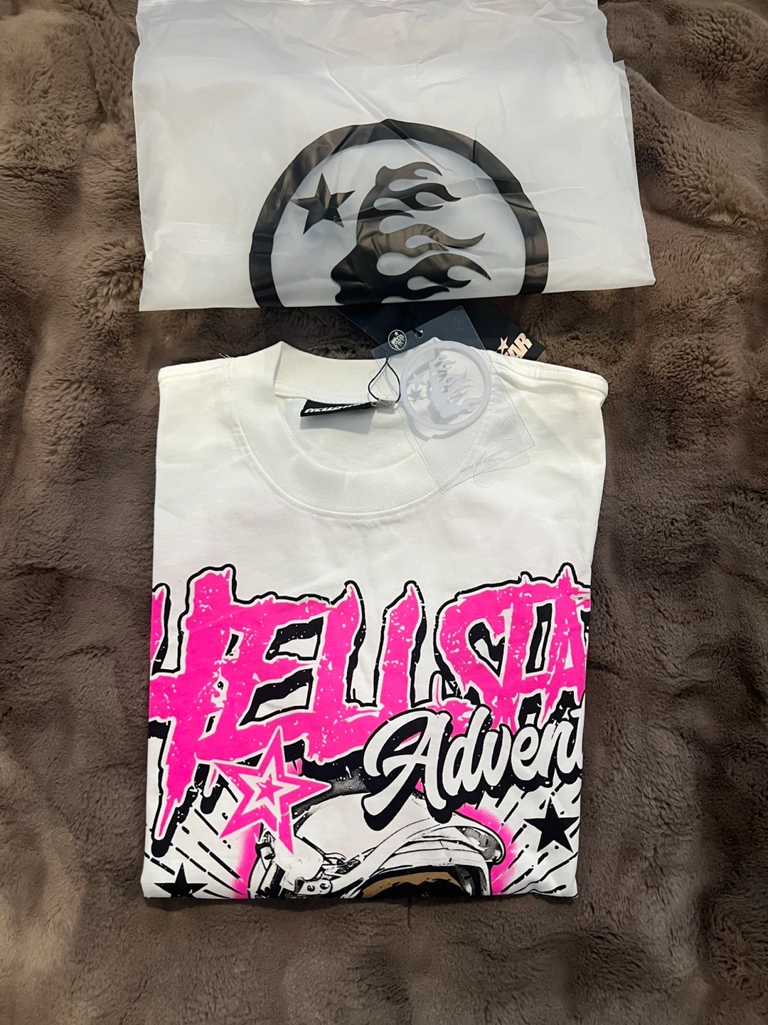 Brand new Hellstar "Never Mind" Adventure t-shirt. Features a graphic print on the front and back. Includes original tags.