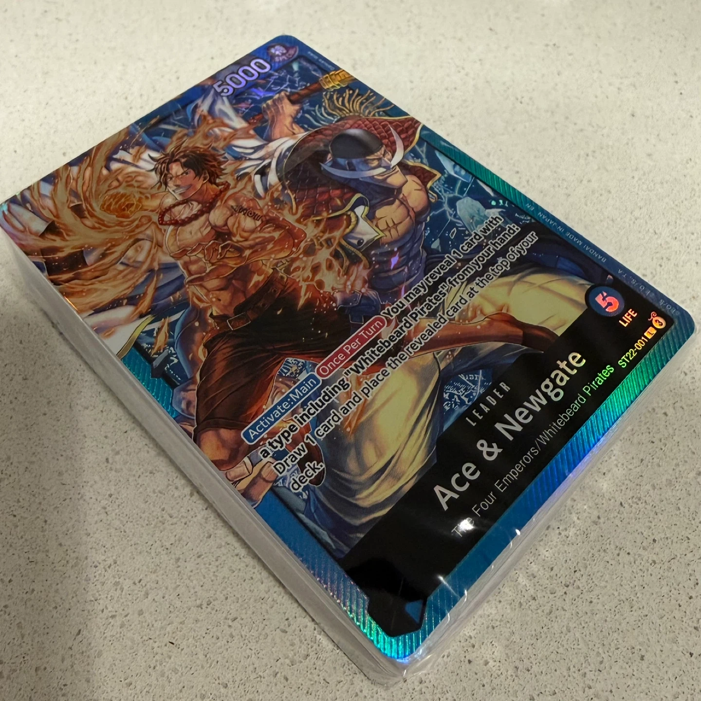 This is a One Piece Card Game starter deck featuring Ace & Newgate. It's part of Starter Deck ST22. This deck is sealed. It does not include any bonus or promo packs. Flexible with meetup location.