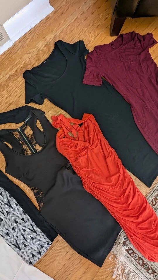 Varying condition and materials, mostly gently used. Sold as a lot, all 12 for $45. Includes Juicy Couture brand and a bunch of comfy cotton dresses. No try-ons, sorry. Sold as is. Cash or e-transfer accepted. Fits approx. size small with stretch to medium on some (4-8).
