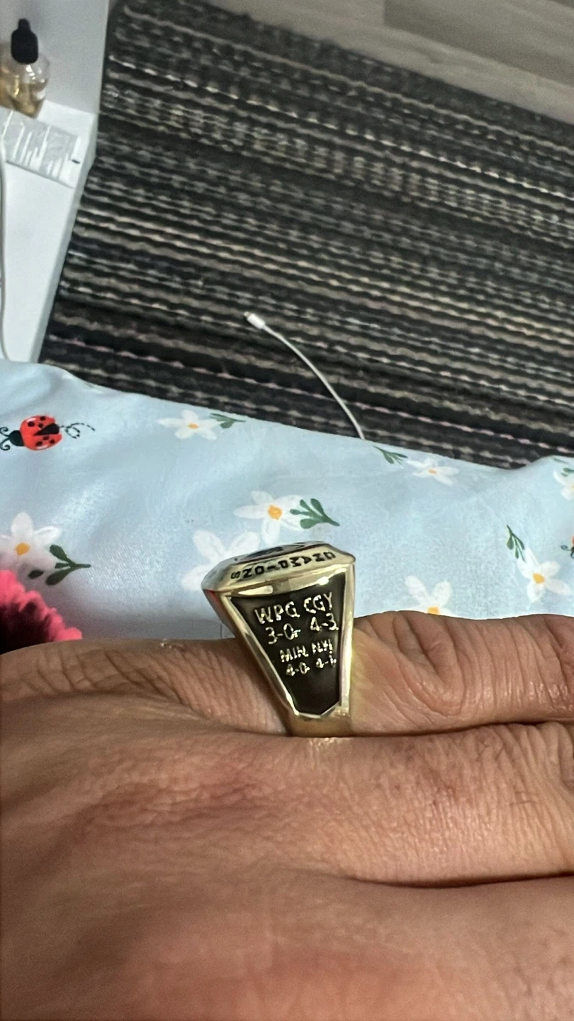 This ring celebrates the Edmonton Oilers' 1984 championship win. It features intricate detailing and a classic design. A great piece for any hockey fan!