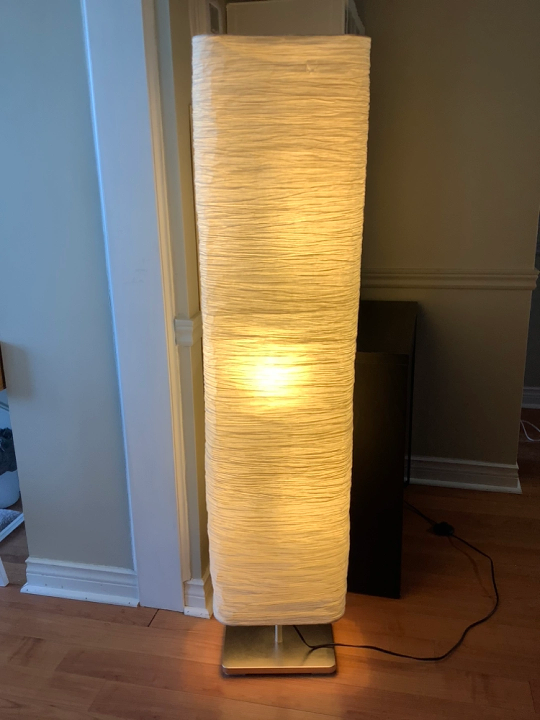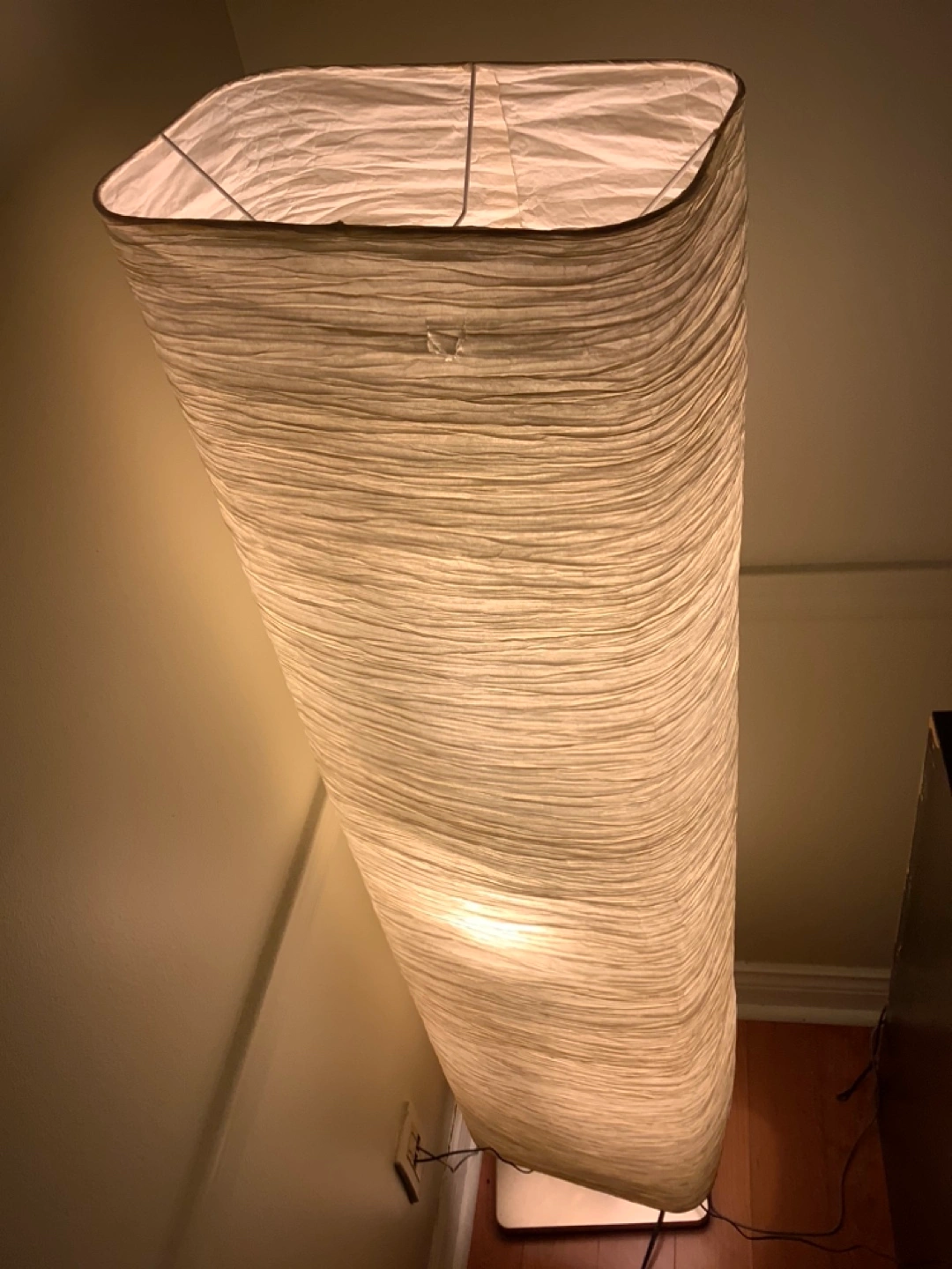 Has the tiniest tear on the top as you can see, but it’s super cute and provides a soft light to the room!