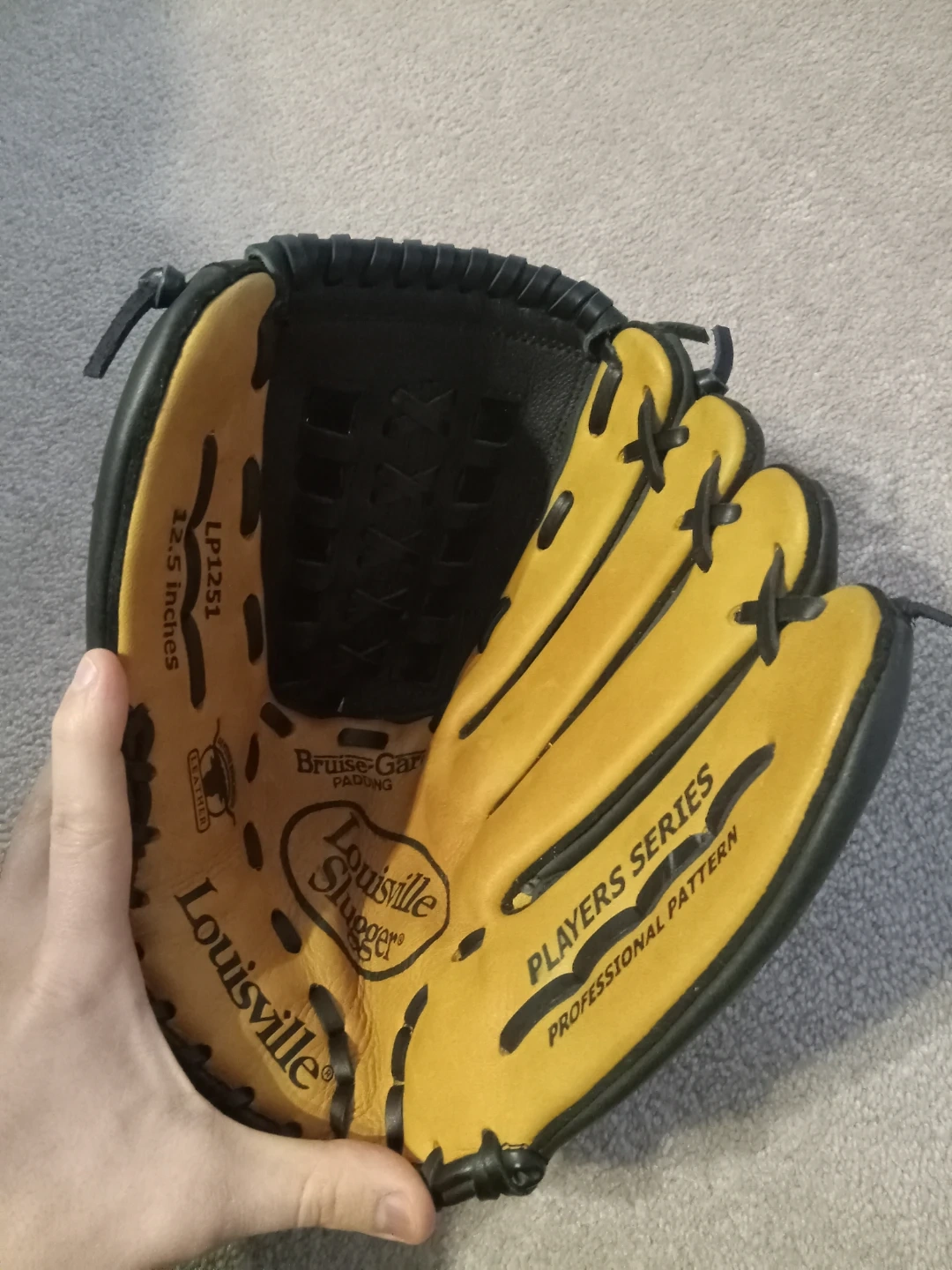 Louisville Slugger Players Series baseball glove. Professional pattern with Bruise Guard padding. 12.5 inches in size.