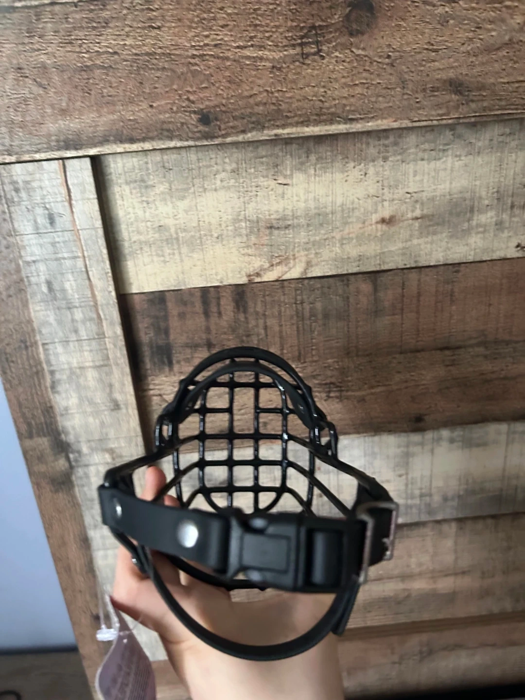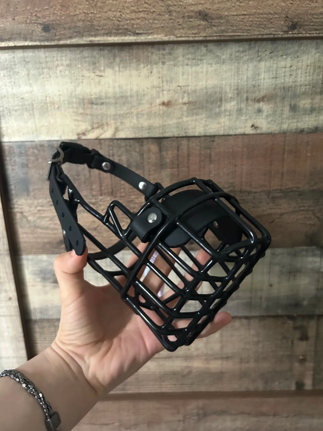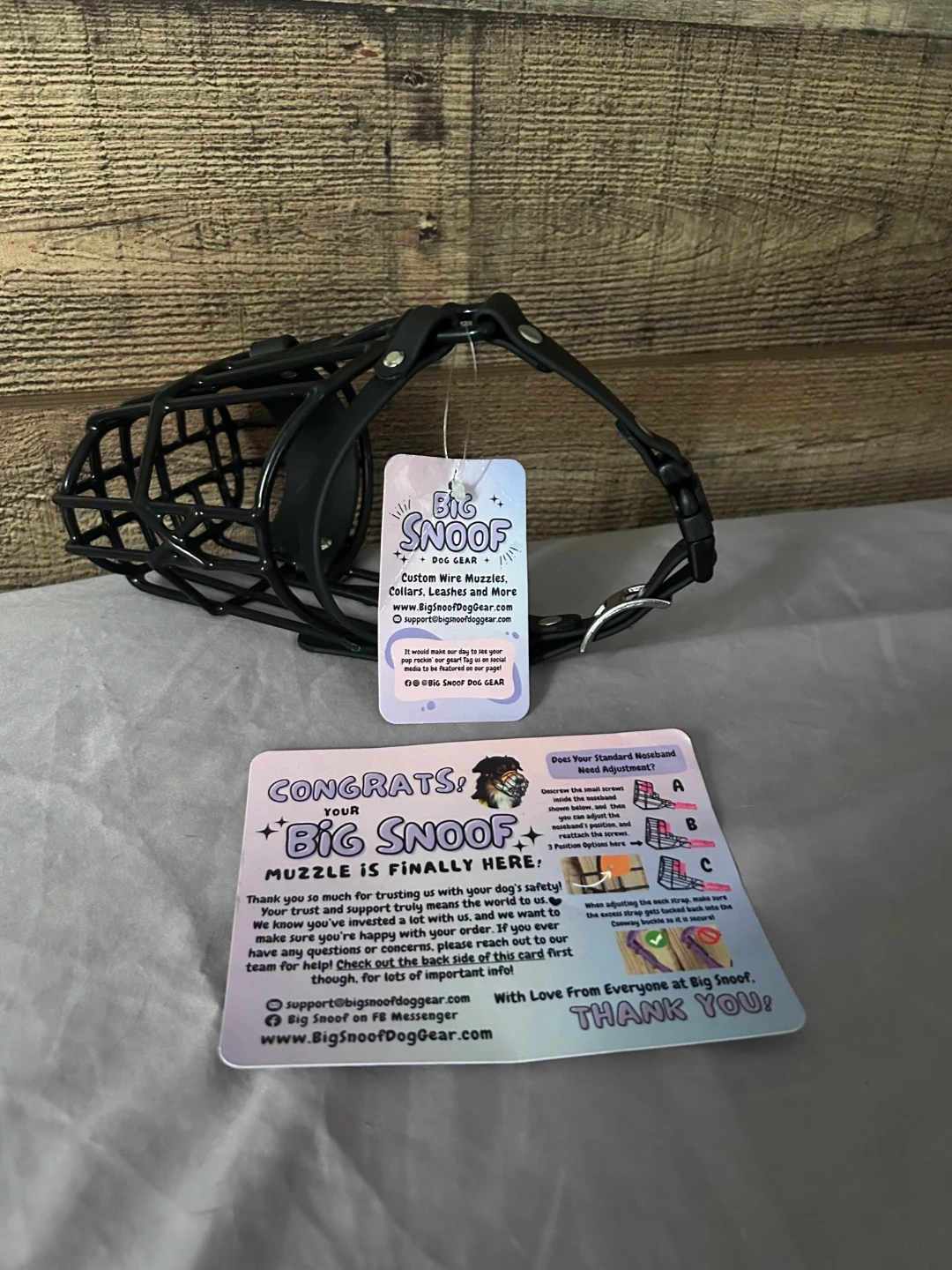 This is a Big Snoof dog muzzle. It's black with adjustable straps for a secure fit. Brand new, still with tag. Bought the wrong size for our dog.