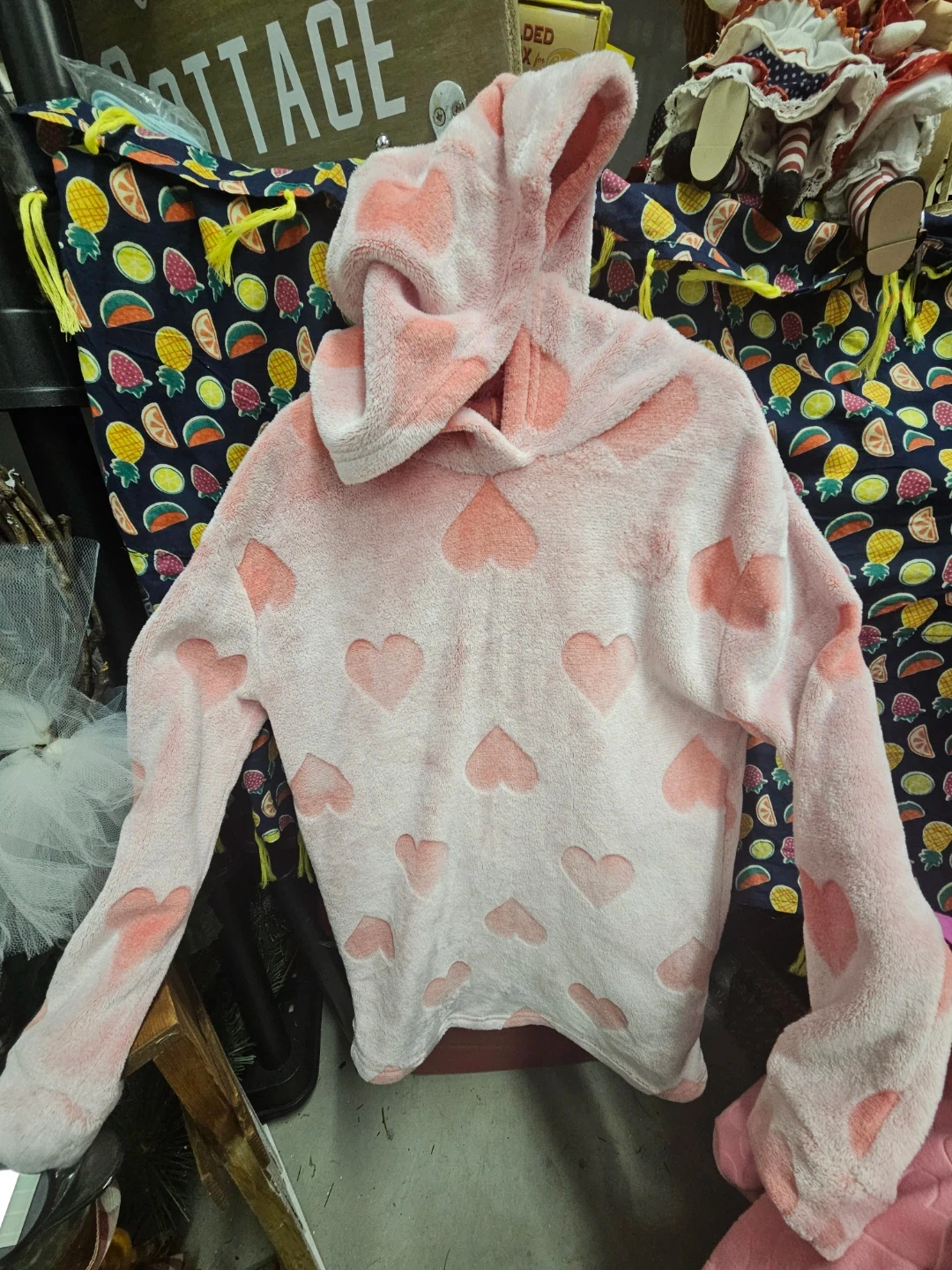 This fuzzy hoodie from George is super soft and features a cute all-over heart pattern. It's a size M/M, which typically fits ages 7-8. Great for staying cozy!