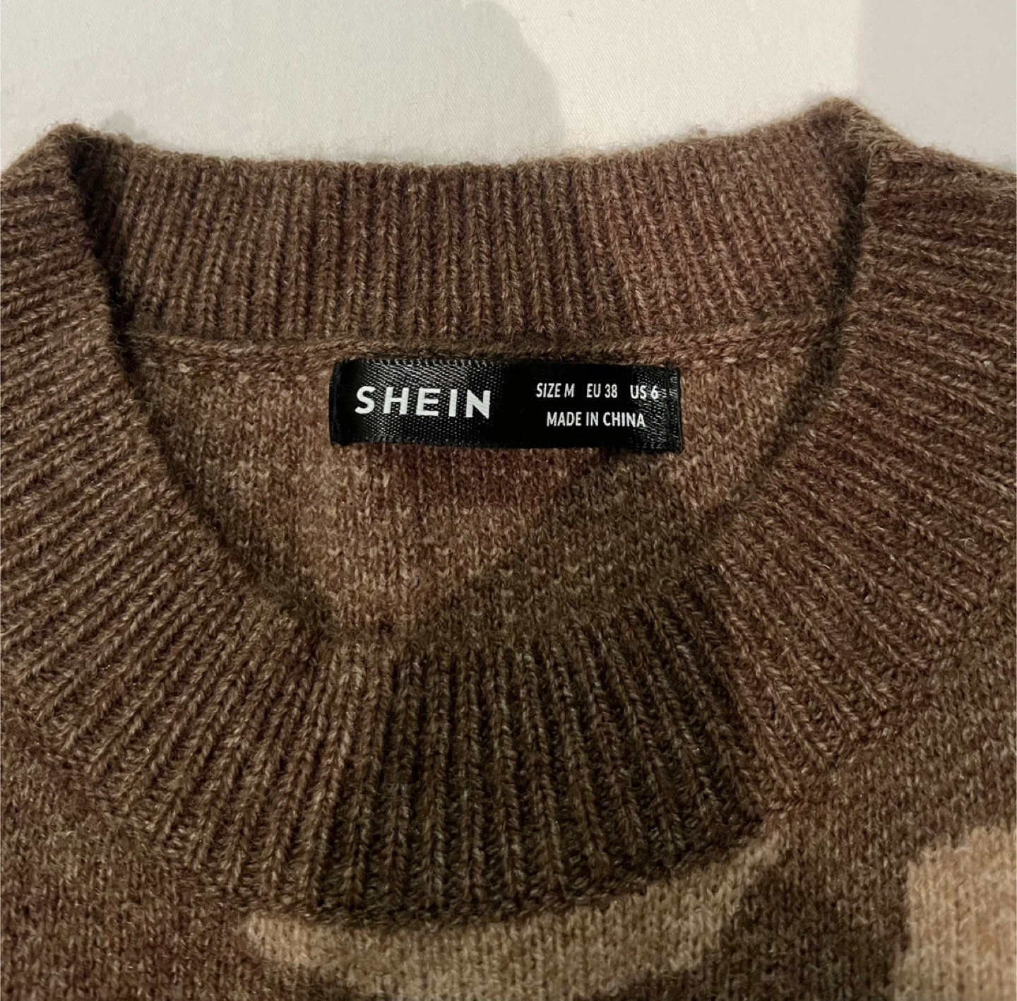 This brand new SHEIN sweater features a trendy leopard print design in brown and beige. It's a size medium and made from 100% acrylic for a cozy feel. Has lantern sleeves. Never been worn.