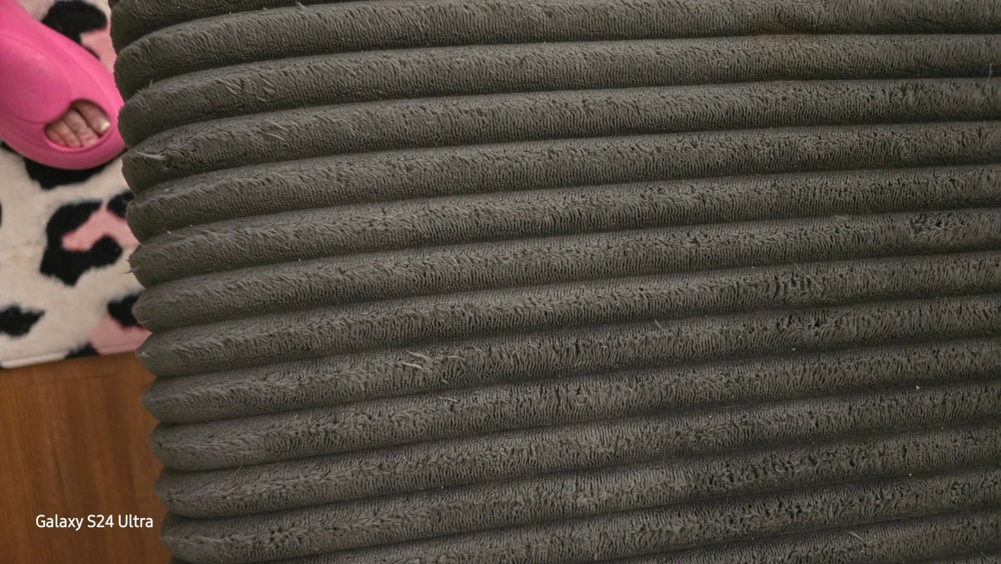 A comfy grey corduroy( love seat part only pics taken of) other side not put together. 6 seater sectional couch. It's made of a soft corduroy material. This couch offers ample seating space for your living room or Basement.