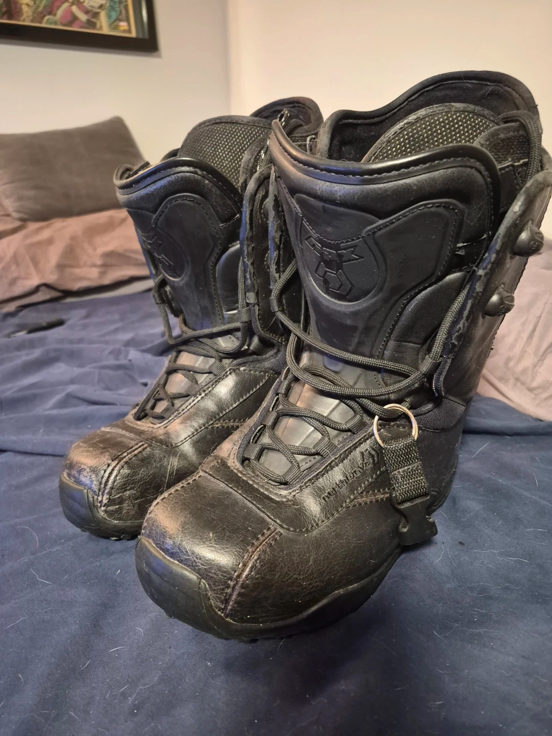 Black Kevin Jones Pro Model Northwave snowboard boots. These boots feature a lace-up closure system. They're made of durable material. When would someone use these? For snowboarding, of course! Size US Men's 9