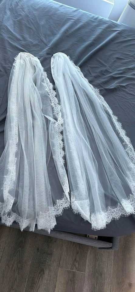 New and flawless. Fingertip length. Off white and ivory with comb sewn in. Please respect pricing.