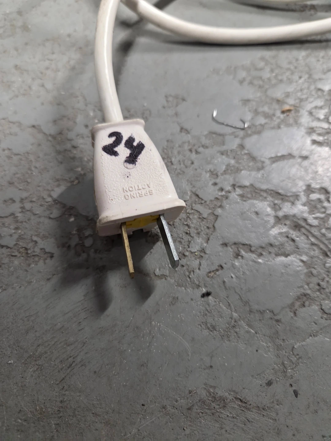 Three white extension cords with a standard plug on one end, bare wires on the other end. The cord is 18AWG and rated for 300V. It's suitable for general use around the house. Lengths: 24', 24', 22'