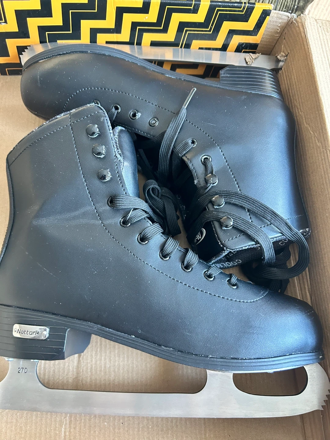 Nattork figure skates feature stainless steel blades and a PU leather exterior.