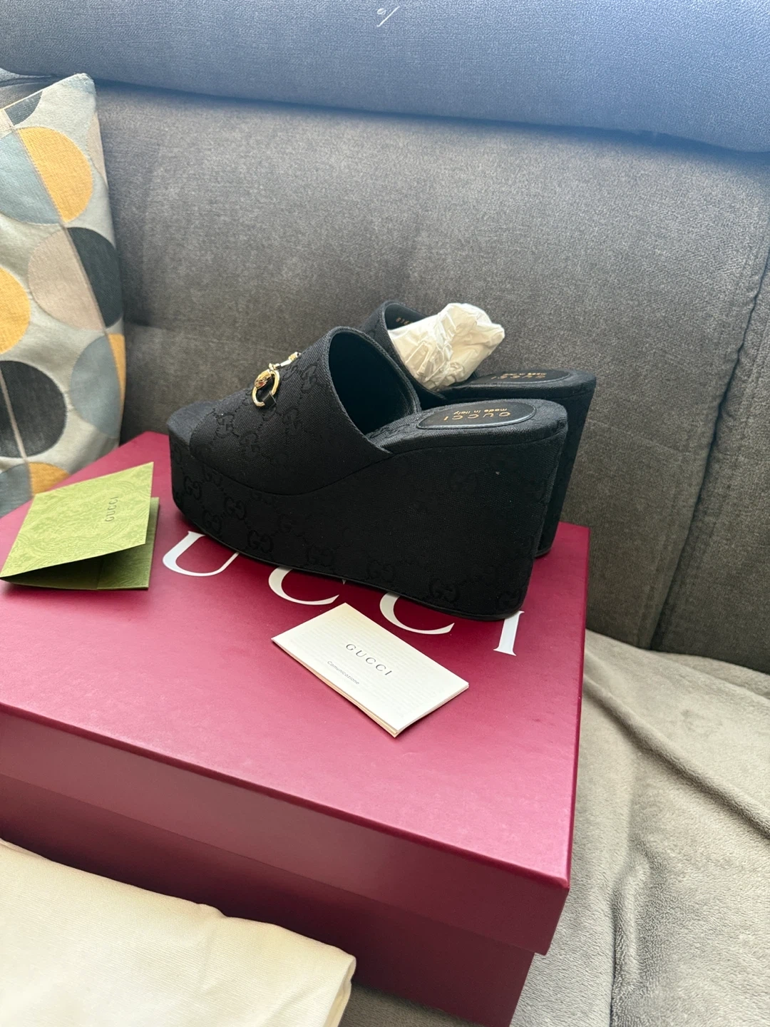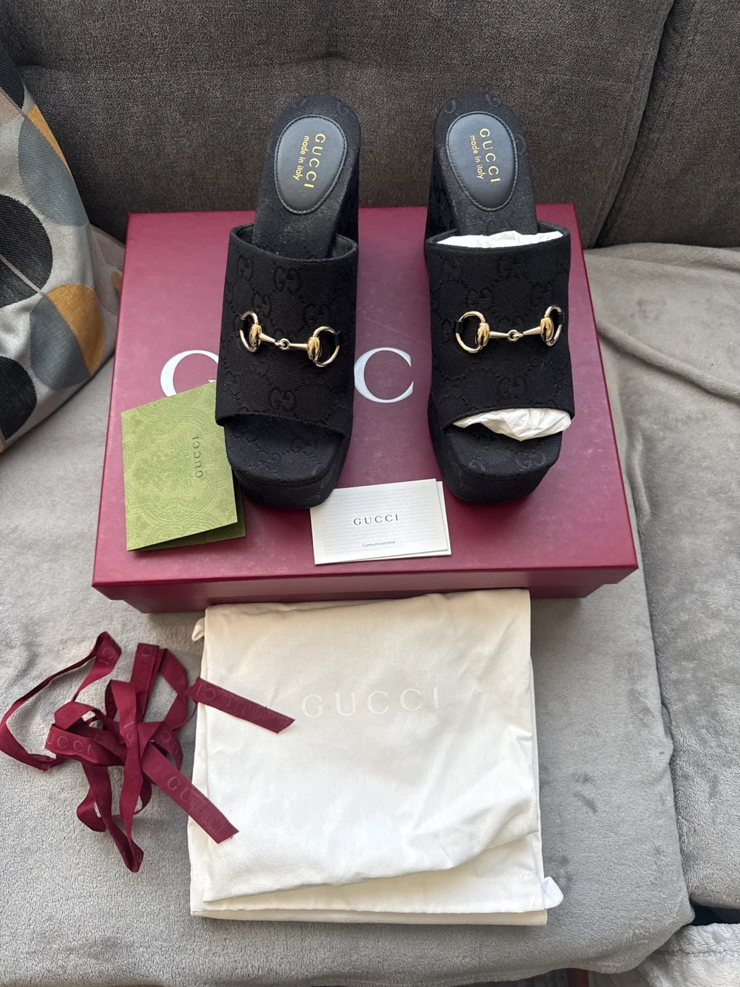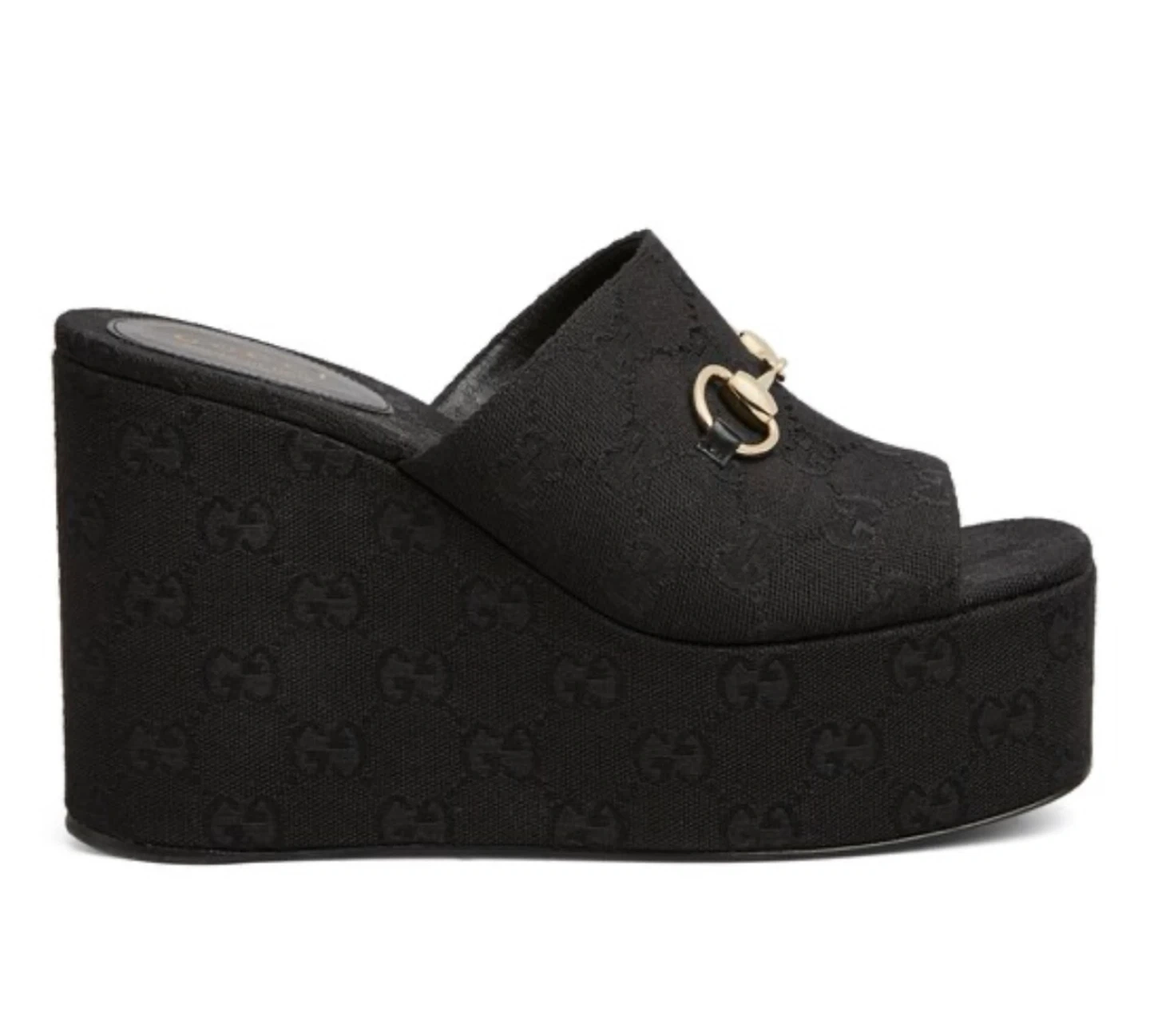 GUCCI Black Wedge Sandals with Horsebit