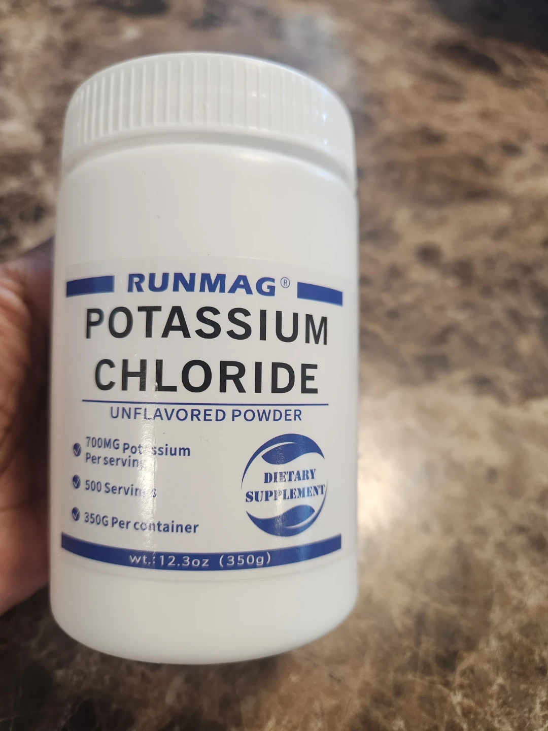 This is Runmag potassium chloride unflavored powder. It contains 700mg potassium per serving and 500 servings per container. The net weight is 12.3oz (350g). Price is firm plz. Pick up midland and Danforth or 401 bay street or stc mall