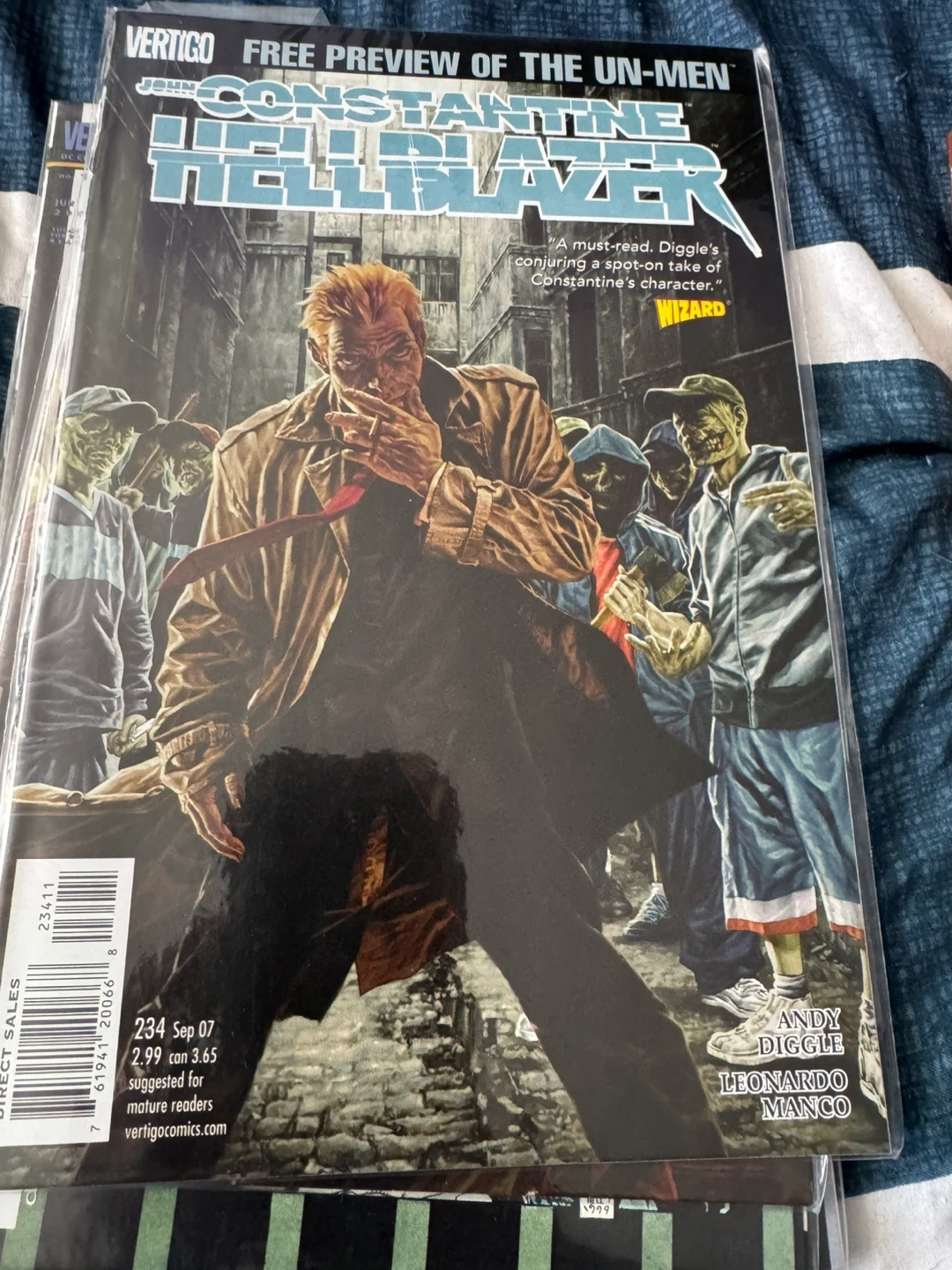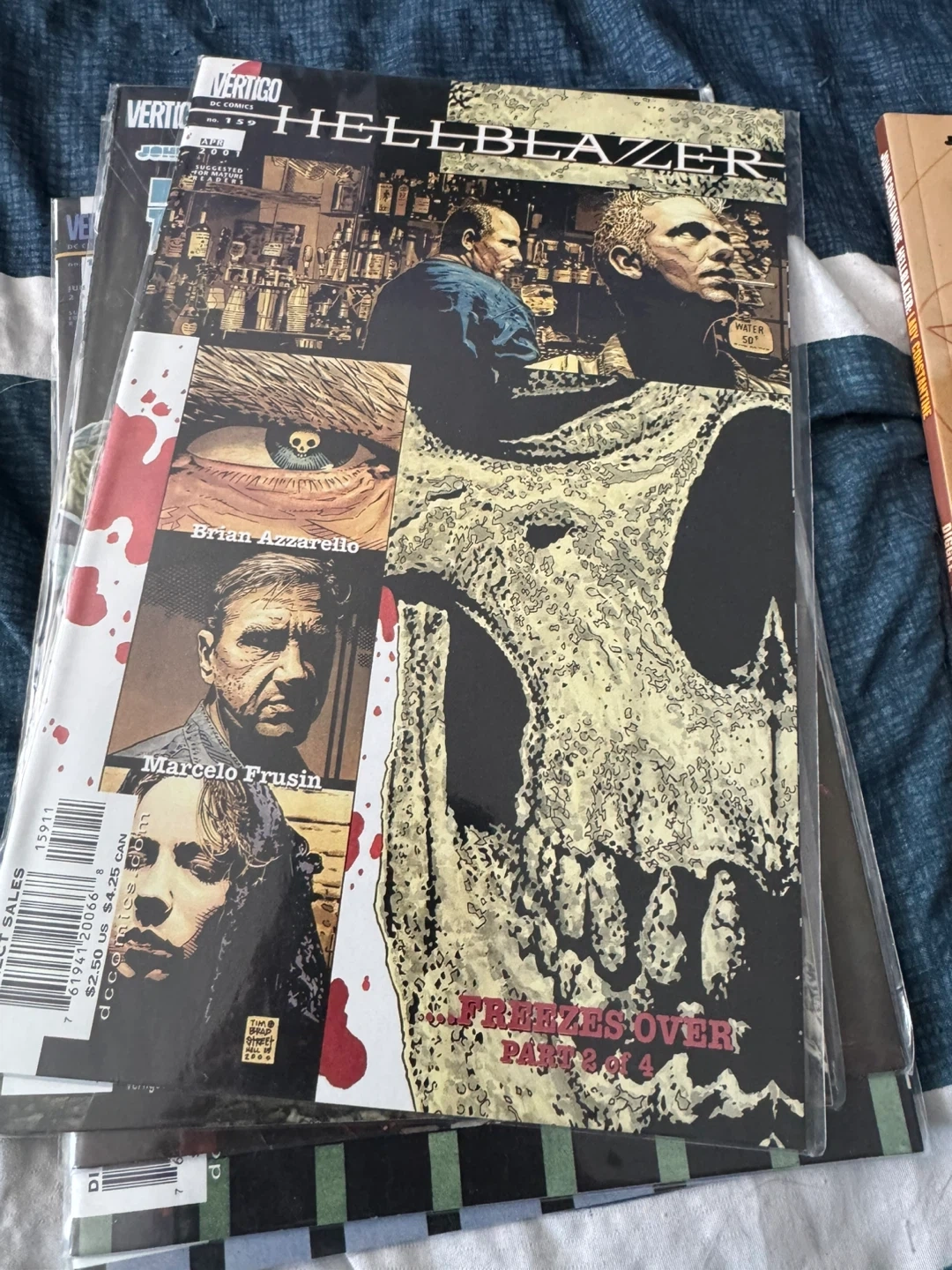 A collection of John Constantine Hellblazer comic books. Includes issues like "Freezes Over" and "Hard Time". Vertigo Comics publication.