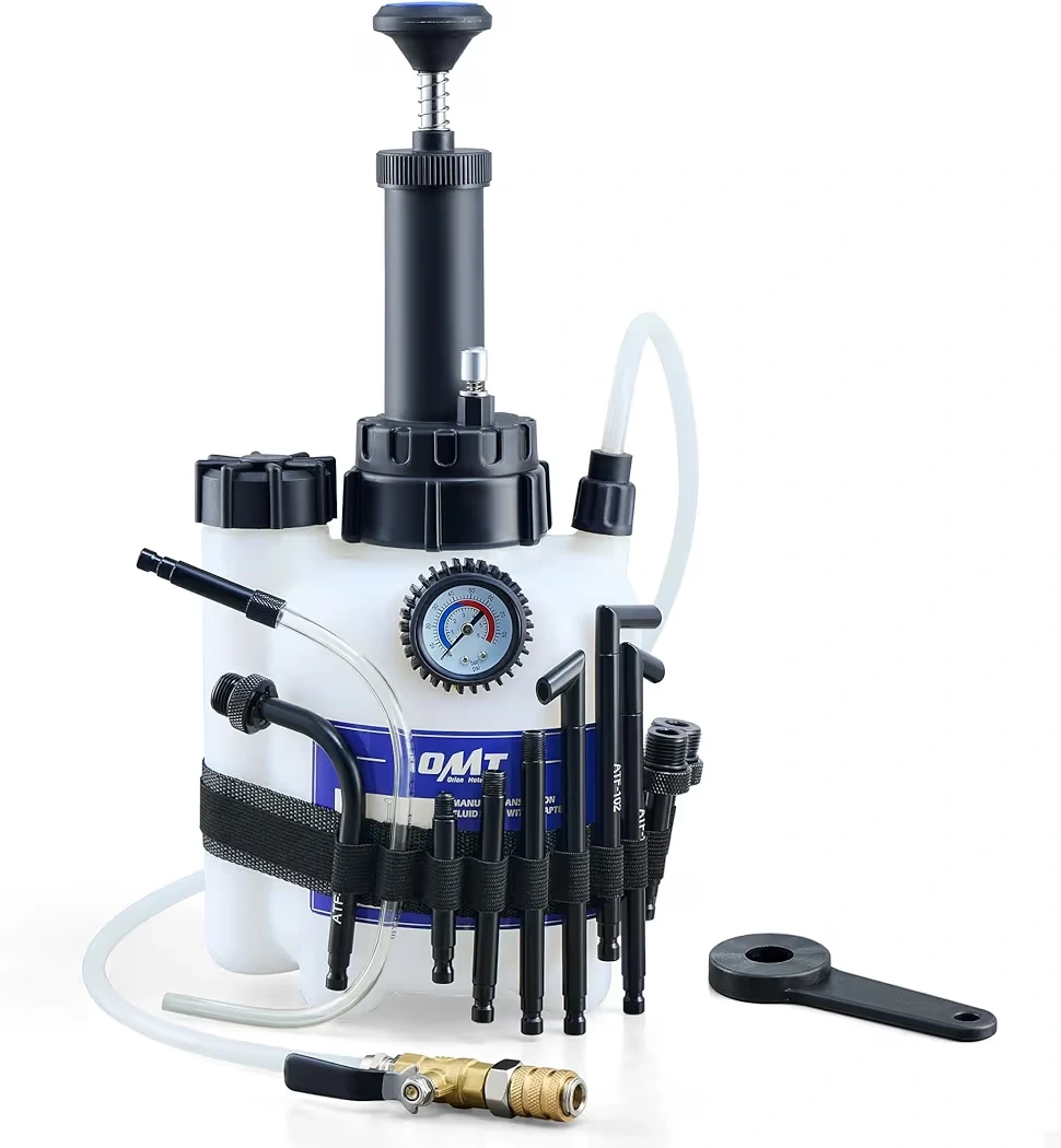 This OMT transmission fluid refill pump kit is designed for efficient fluid filling. It has a 3 L tank capacity and a max dispense pressure of 86 psi. Includes 12 OE-style ATF adapters for wide compatibility with various vehicles.