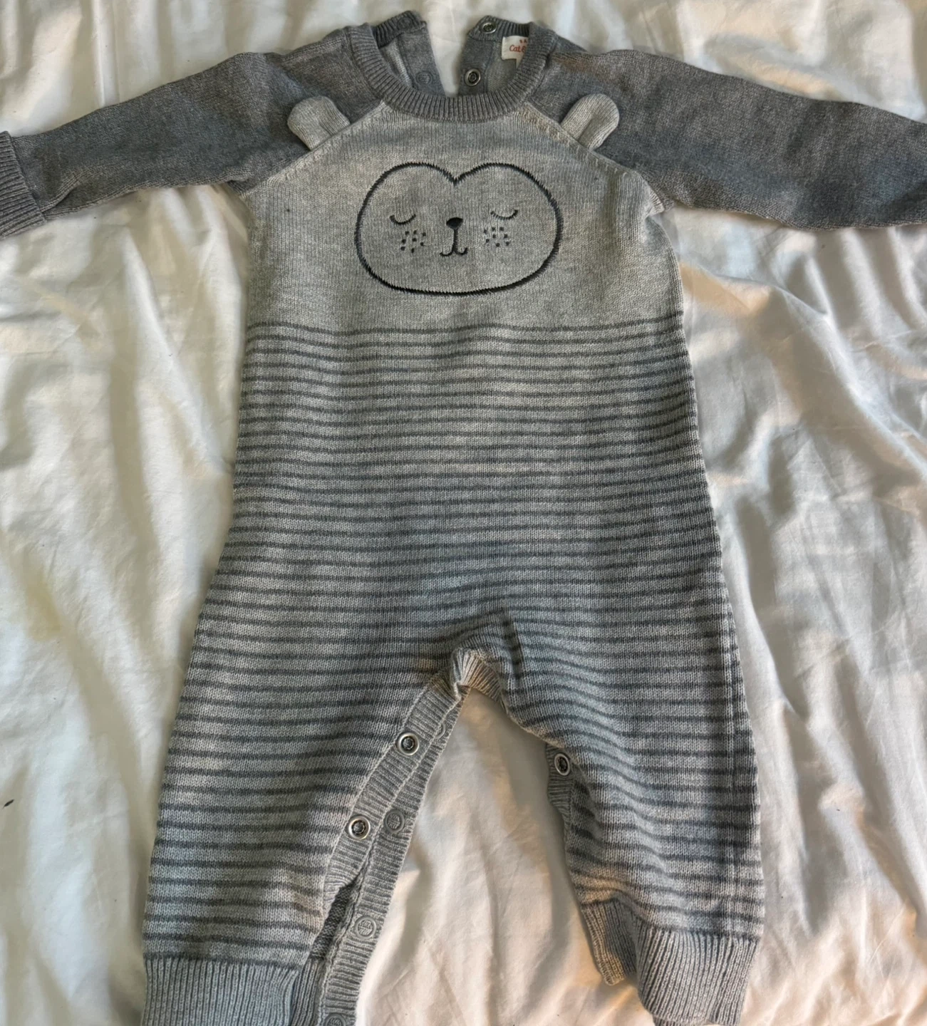 Baby Cat & Jack Gray Bear Knit Romper 3-6M