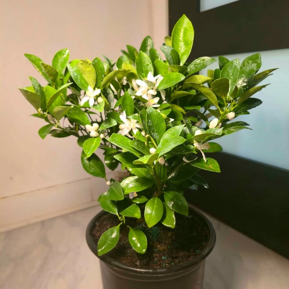 Real Lime Tree with white flowers that smell like Jasmine / Sampaguita, very floral and relaxing. This Lime Tree can grow indoors during the winter and placed outside for the summer. Repotting immediately is not necessary. In an 8" inch black pot, it stands 1.6' feet tall and is 1.2' feet wide. Needs a bright and warm location indoors and weekly watering. FREE LOCAL DELIVERY / PICK-UP!