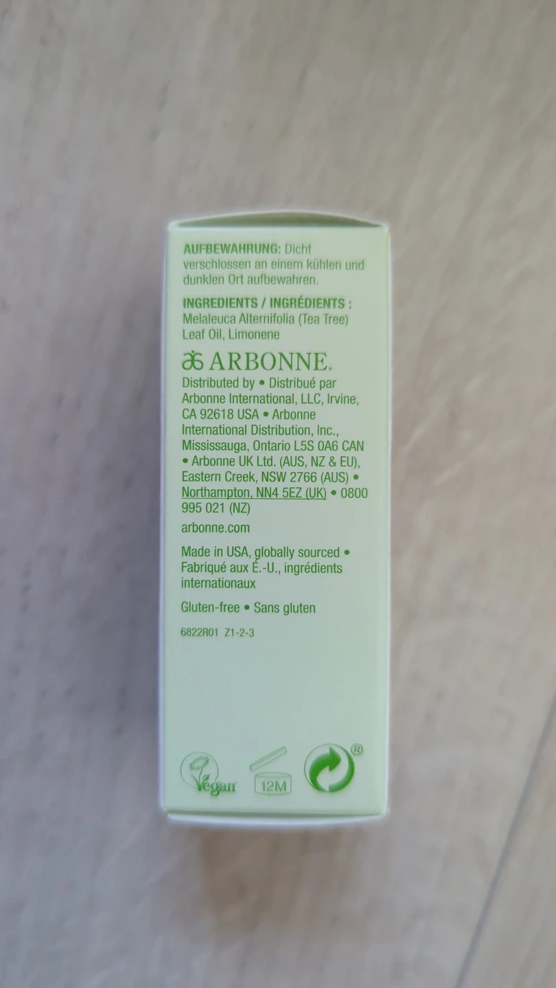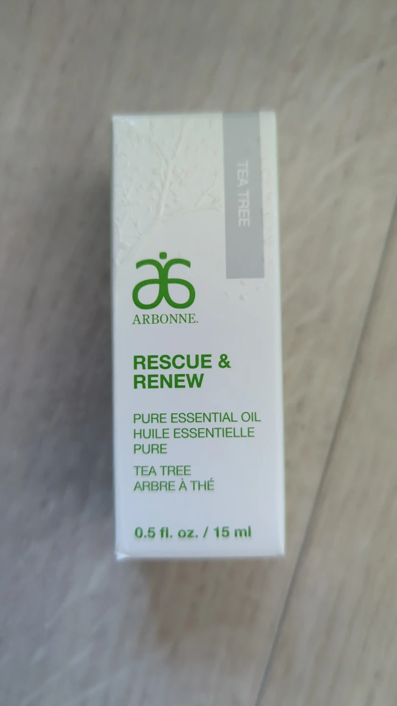 Arbonne Rescue & Renew Pure Essential Oil in Tea Tree. Contains Tea Tree Leaf Oil and Limonene. 15 ml / 0.5 fl. oz. size.