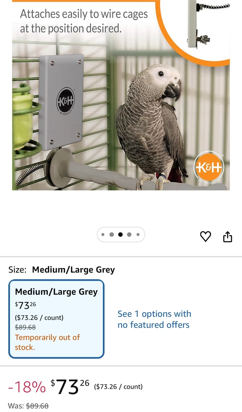 This K&H Pet Products Snuggle Up warmer is designed to provide gentle warmth for birds. It attaches easily to wire cages at the desired position. The unit measures 7 inches by 4 inches