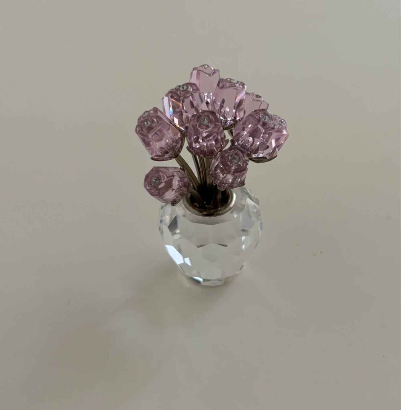 Swarovski Crystal "A Dozen Pink Roses" figurine, produced for the Swarovski "In the Secret Garden" series in the early 2000s! This beautiful sculpture was one of the only Colored Crystal pieces released for the "In the Secret Garden" series. The faceted pink lead crystal Roses are attached to silver-toned stems and were placed in the faceted clear crystal vase.