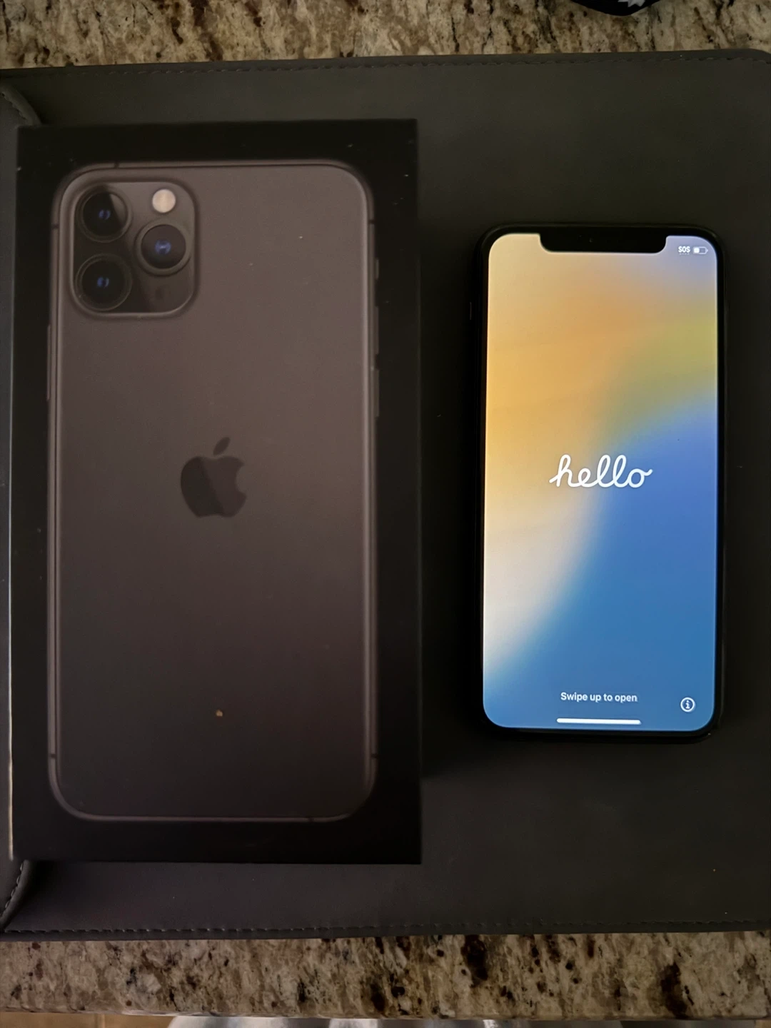 Selling an Apple iPhone 11 Pro in Space Grey. . It comes with the original box and packaging. This phone has a triple-camera system that I loved using! Selling because husband and I upgraded !! This phone served me well for four years and I hope this goes to a good home! I’m also throwing in three cords for charging that I’ve never been used.