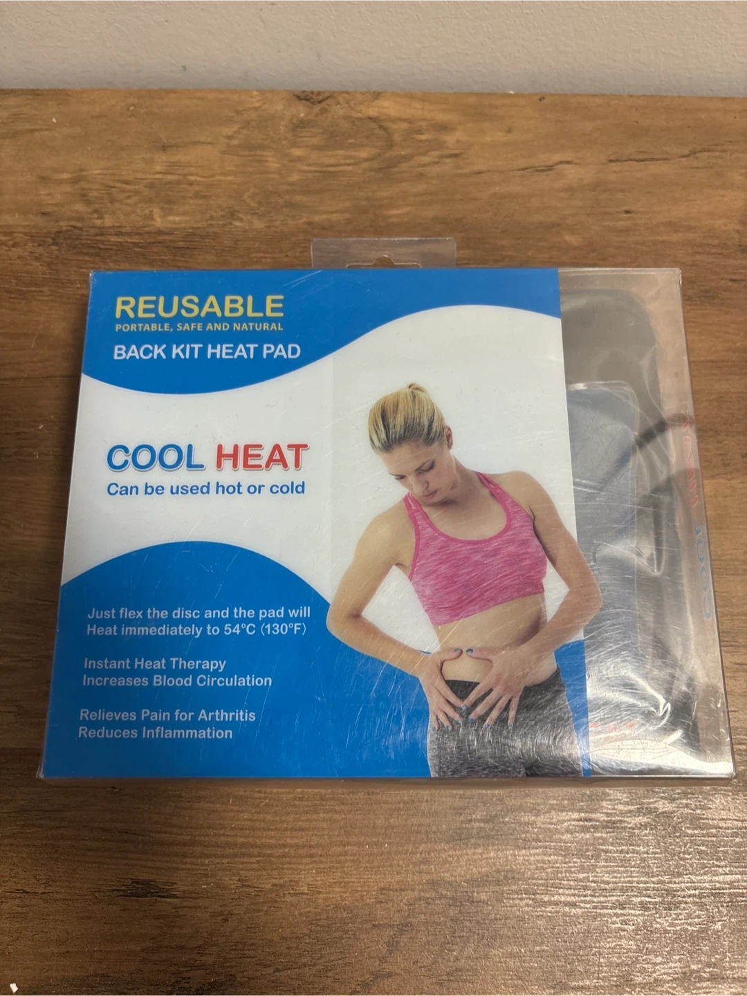 This reusable heat pad provides instant heat therapy by simply flexing the metal disc inside. It can be used hot or cold and heats up to 54°C (130°F). Relieves pain for arthritis and reduces inflammation.