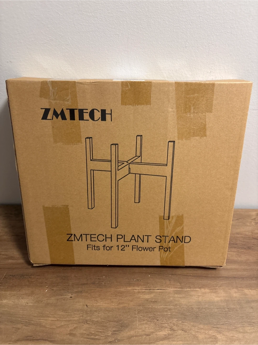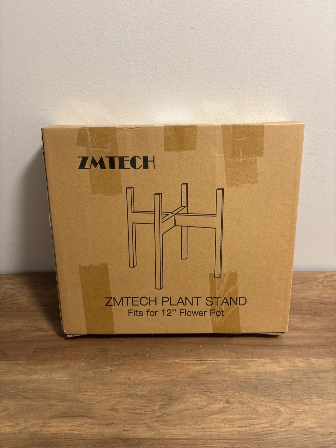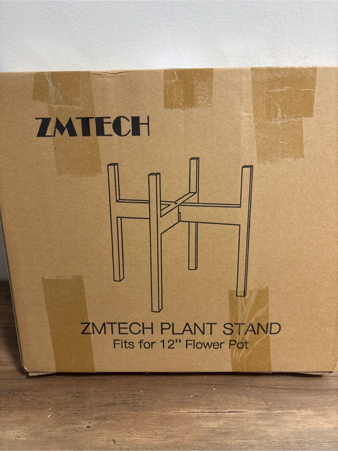 Zmtech plant stand included. Fits up to a 12 inch flower pot. It's made of sturdy material. Great for adding some height to your plants!