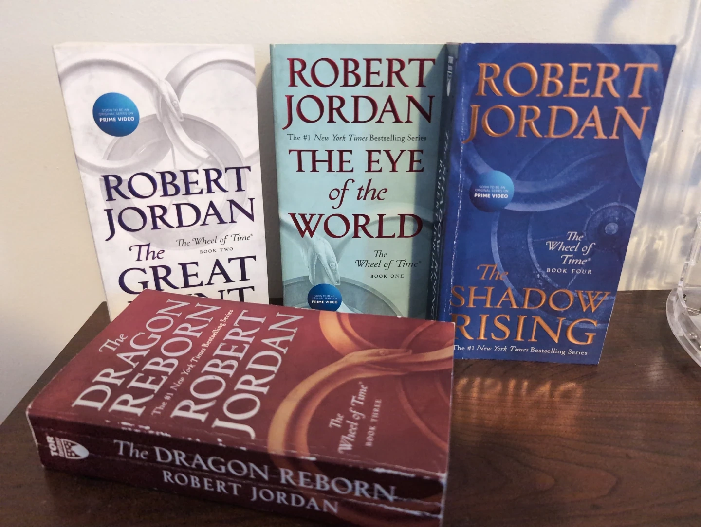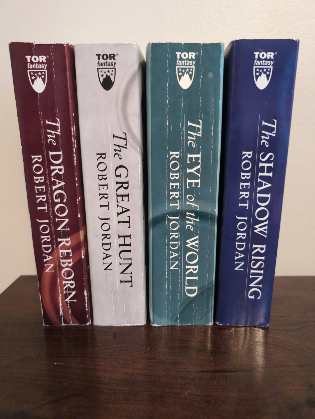 This is a set of four books from Robert Jordan's The Wheel of Time series. Includes The Dragon Reborn, The Great Hunt, The Eye of the World, and The Shadow Rising. Fantasy novels. Pick up only please, SF/BF home.