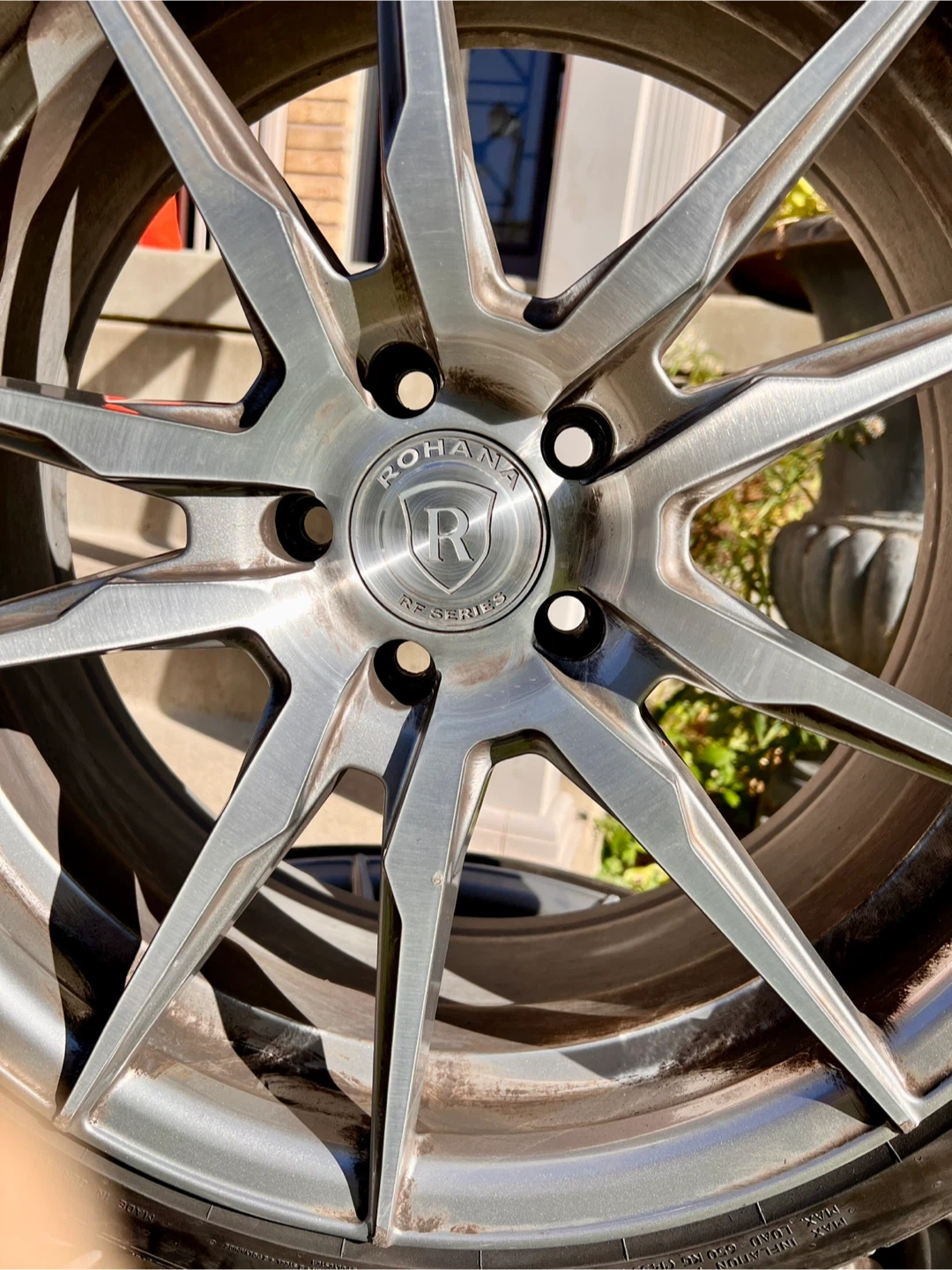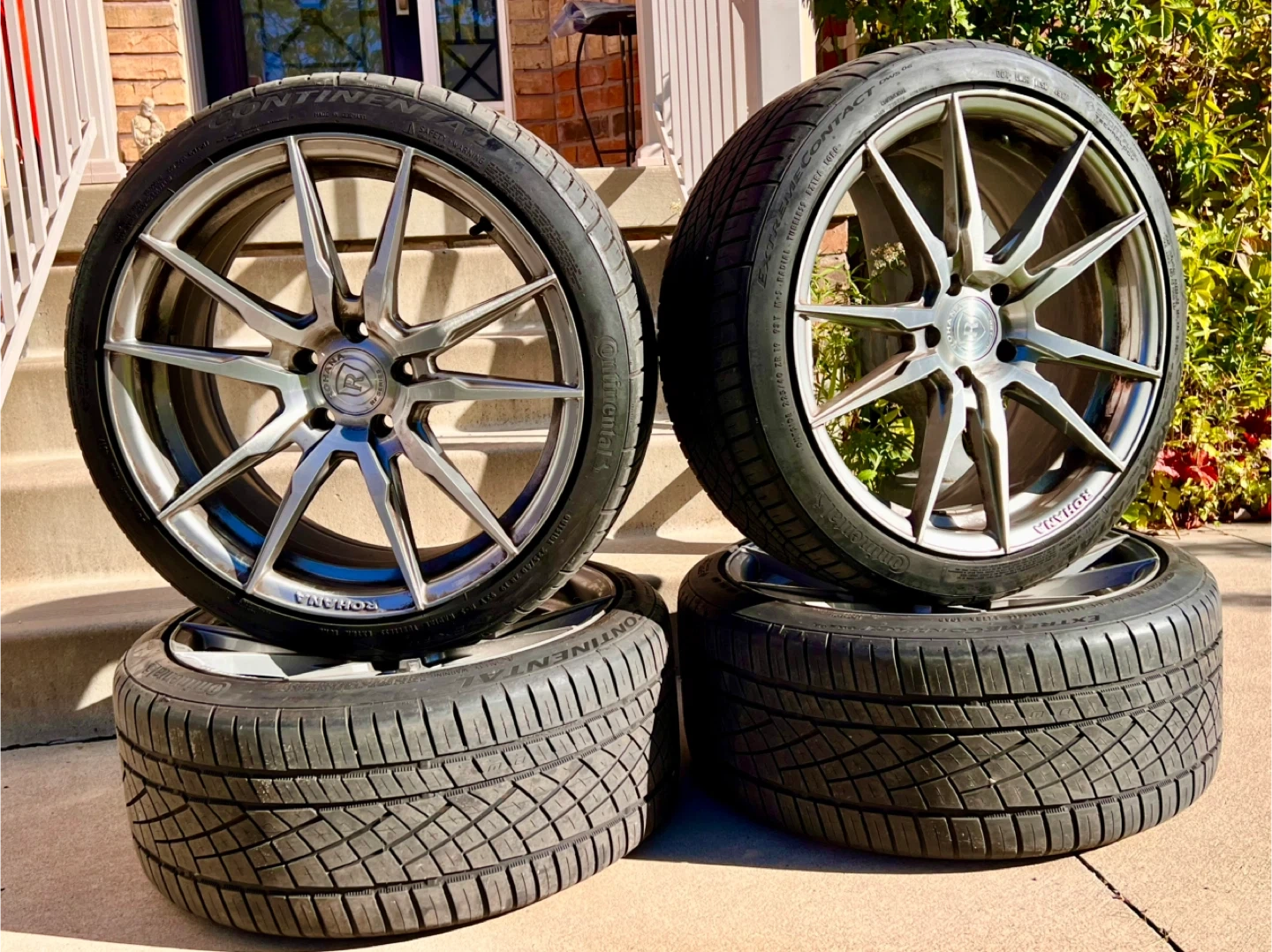Set of four Rohana RFX11 wheels with Continental tires. Great condition, ready to go! These wheels measure 20 inches and come with performance tires.
