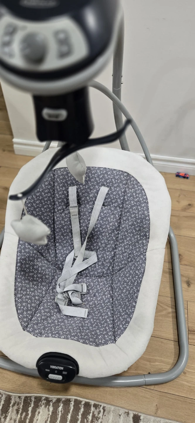 This Graco baby swing has multiple speed settings and soothing vibrations. It's designed with a comfortable seat and a secure harness. Great for keeping little ones content!