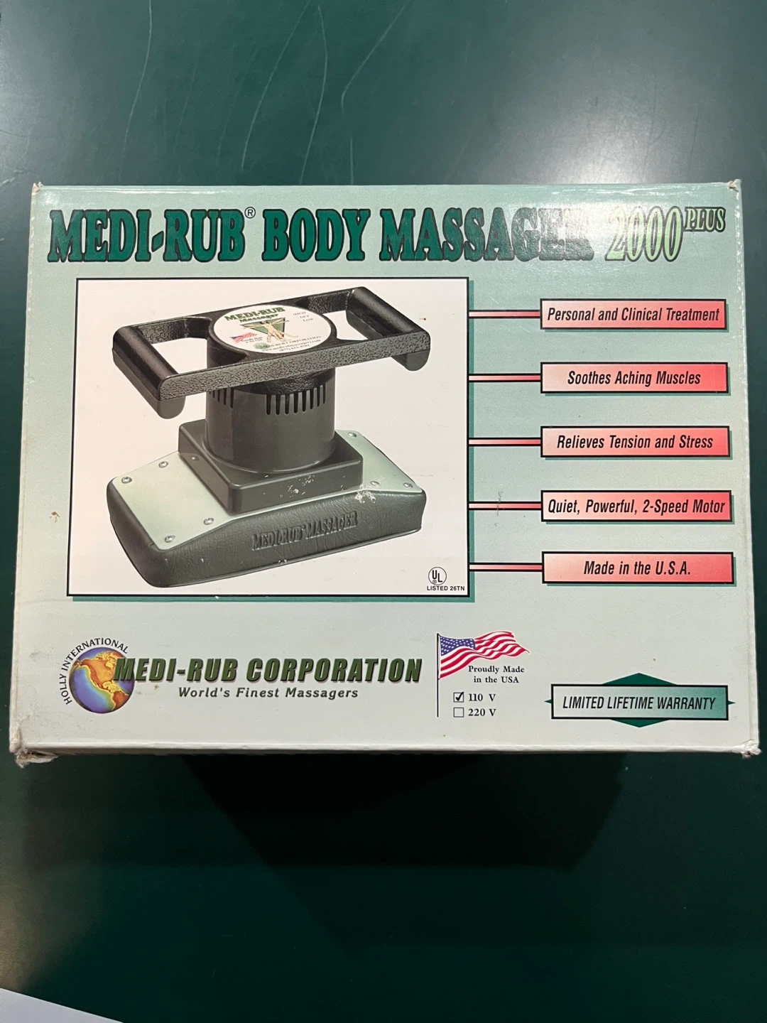 This is a Medi-Rub Body Massager 2000 Plus. It features a quiet, powerful, 2-speed motor for personal and clinical treatment. Relieves tension and stress, and soothes aching muscles. I bought two and use one, this one has never been used.