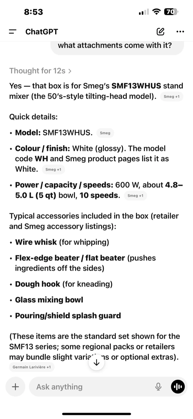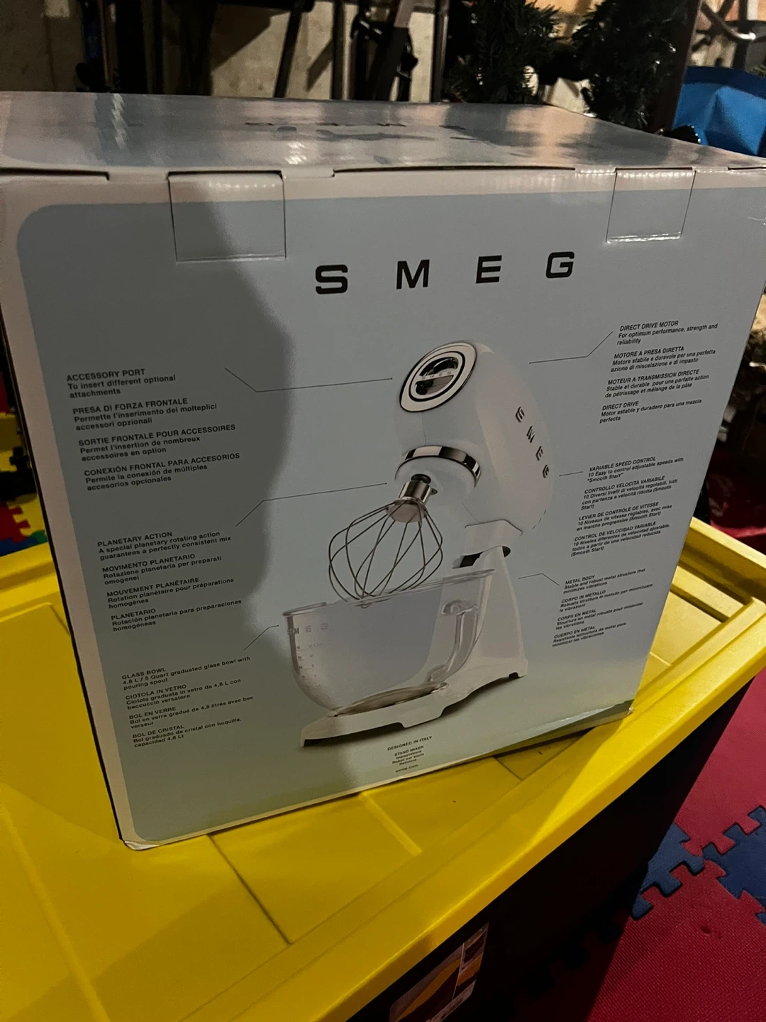 This is a white SMEG stand mixer. It has a 4.8L glass bowl and a direct drive motor. Variable speed control makes it easy to use. Brand new in box - box has never been opened. Pick up in keswick