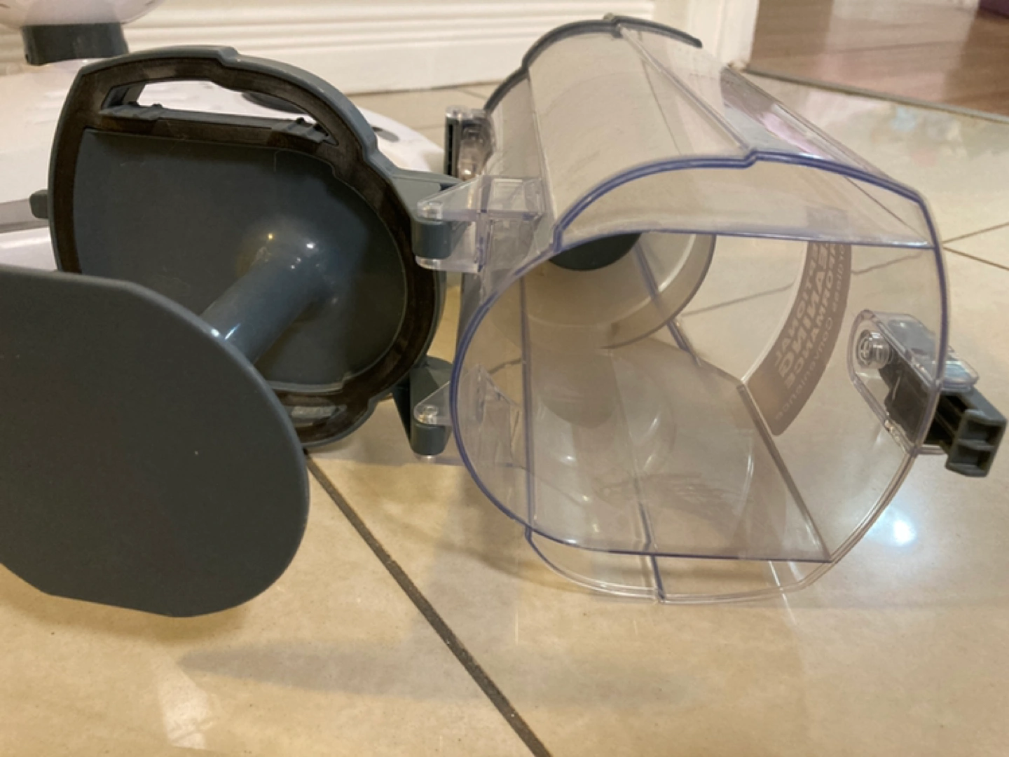 Works perfectly, easy to clean, bagless, rechargeable, well maintained, can be taken apart to clear blockages if necessary.