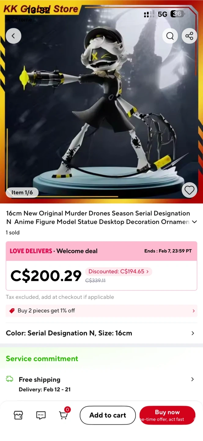 This is a 16cm anime figure model of Serial Designation N from Murder Drones. It features detailed character design and comes in its original packaging. It's a collectible desk decoration.