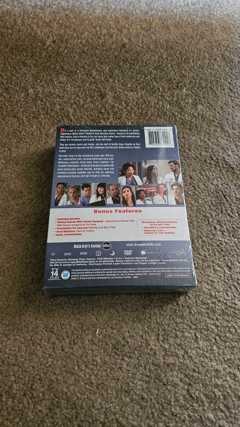 Selling a brand new sealed Grey's Anatomy Season 3 Seriously Extended DVD set. It includes extended episodes and audio commentaries.