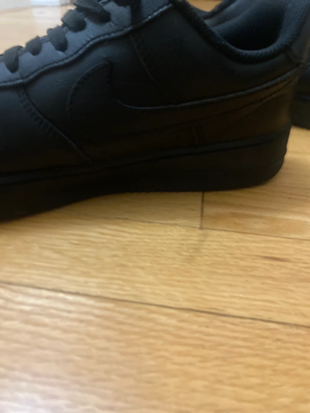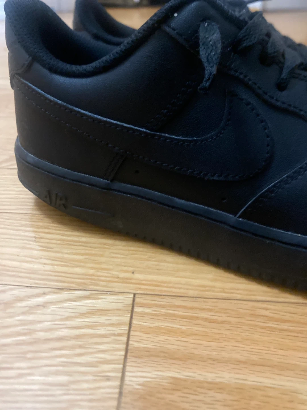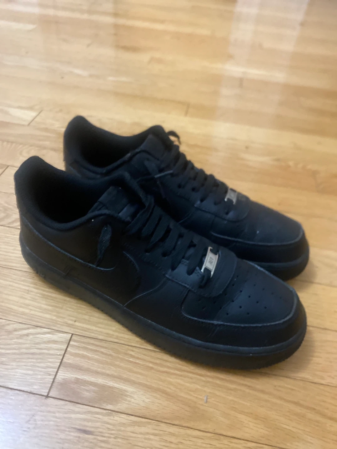 Classic Nike Air Force 1 Low sneakers in a stealthy all-black colourway. These kicks are made with a durable leather upper and feature the iconic Nike swoosh. They're built for comfort and style, making them a versatile addition to any wardrobe. A staple for everyday wear!