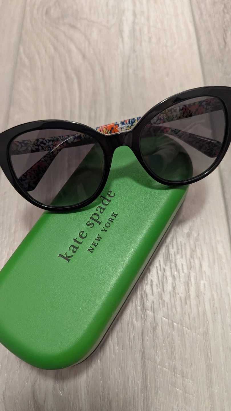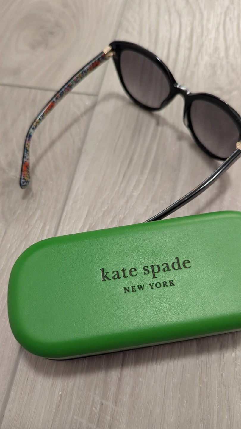 Brand New Stylish Kate Spade Amberlee fashion sunglasses in black. They feature polarized grey gradient lenses and a fun floral design on the arms. Includes original Kate Spade case. Retails $200+ and I've only worn 5 times.