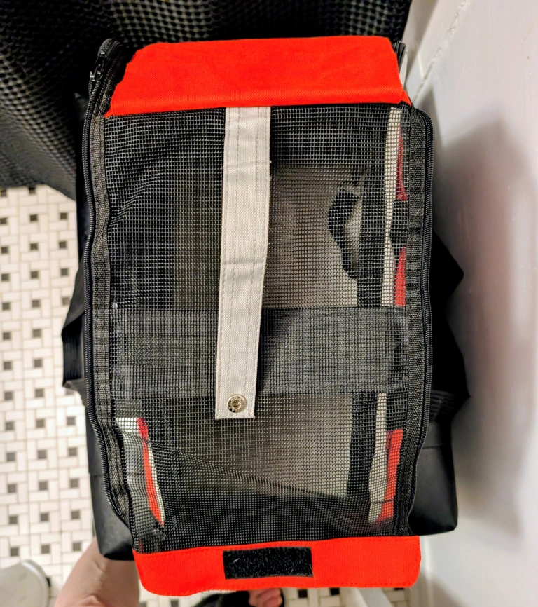 This is a PetLuxe pet carrier bag. It's made with a combination of mesh and fabric for breathability and durability. The interior features a soft, removable sherpa-style pad for your pet's comfort. It has top handles for carrying. Can also be used as a car seat.